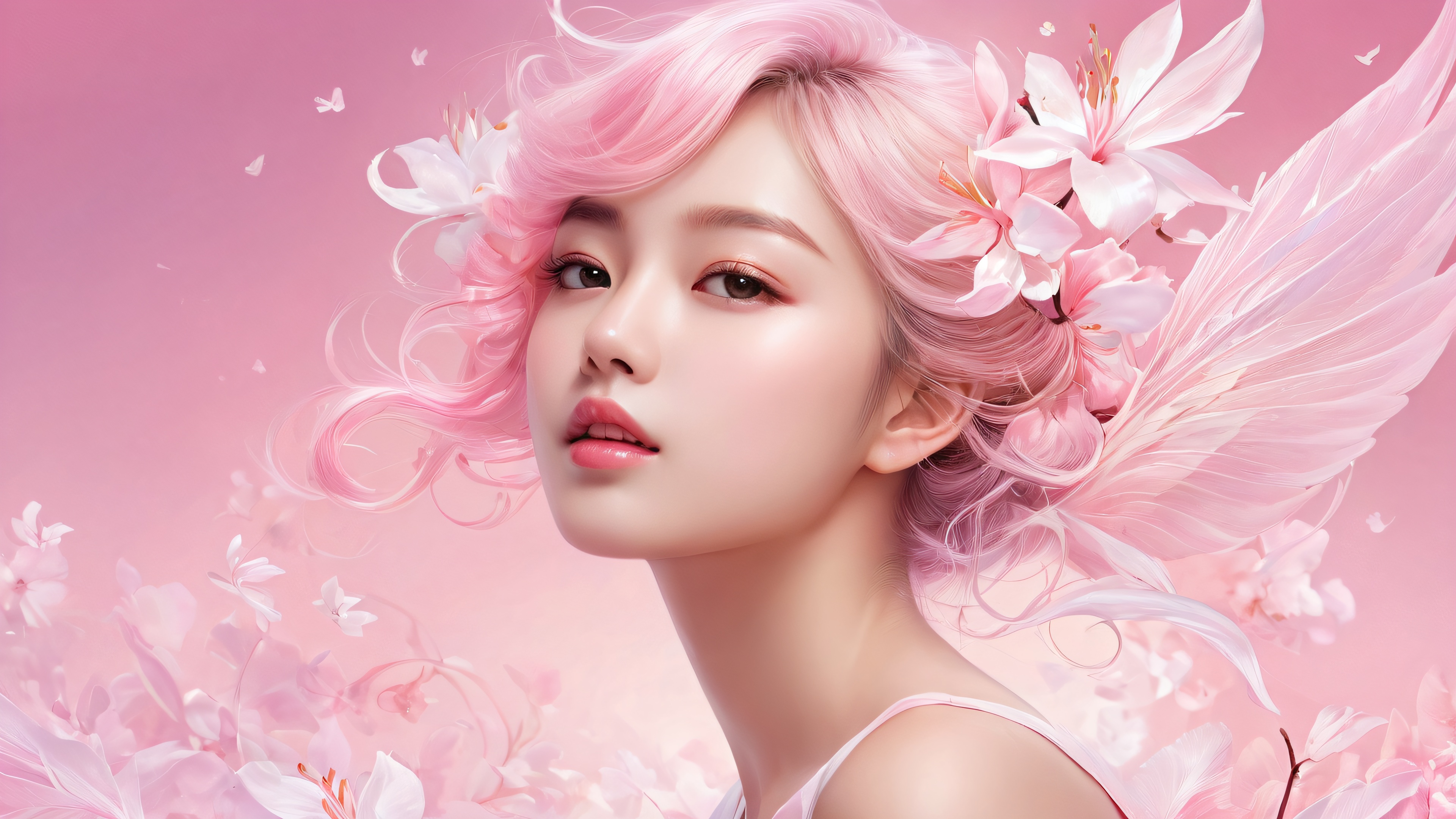 A breathtaking desktop wallpaper of women, perfectly clean vast pure void, extreme depth of field, award-winning digital art, pristine clarity, Ethereal lighting with radiant, brilliant colors, ray traced reflections, and pristine clarity. Bright and airy., [‘pink’, ‘soft pastels’], 16:9 aspect ratio, ethereal lighting, radiant, brilliant colors, ray traced reflections, pristine clarity, award-winning digital art, epic breathtaking scale, stunning visual impact, perfect composition, highly textured surfaces, intricate micro-details, physically based rendering, macOS wallpaper aesthetic, masterpiece, highest quality, highly detailed, 8k resolution.