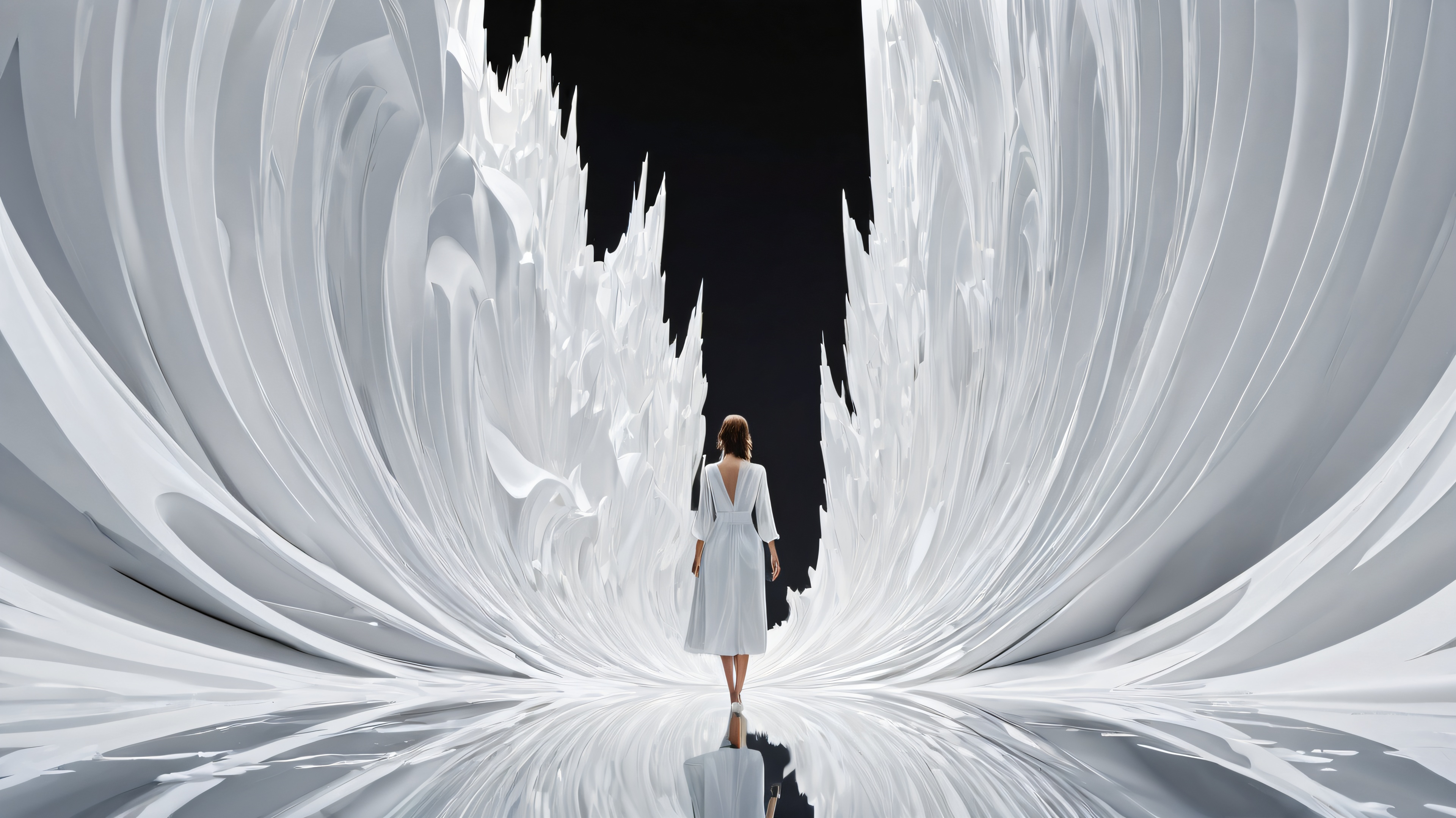 A breathtaking desktop wallpaper of Centered Figure, Perfectly clean vast pure void, extreme depth of field, Award-winning digital art, pristine clarity, Ethereal lighting. Radiant, brilliant colors, ray traced reflections, and pristine clarity. Bright and airy., [‘Black’, ‘White’], 16:9 aspect ratio, ethereal lighting, radiant, brilliant colors, ray traced reflections, pristine clarity, award-winning digital art, epic breathtaking scale, stunning visual impact, perfect composition, highly textured surfaces, intricate micro-details, physically based rendering, macOS wallpaper aesthetic, masterpiece, highest quality, highly detailed, 8k resolution.