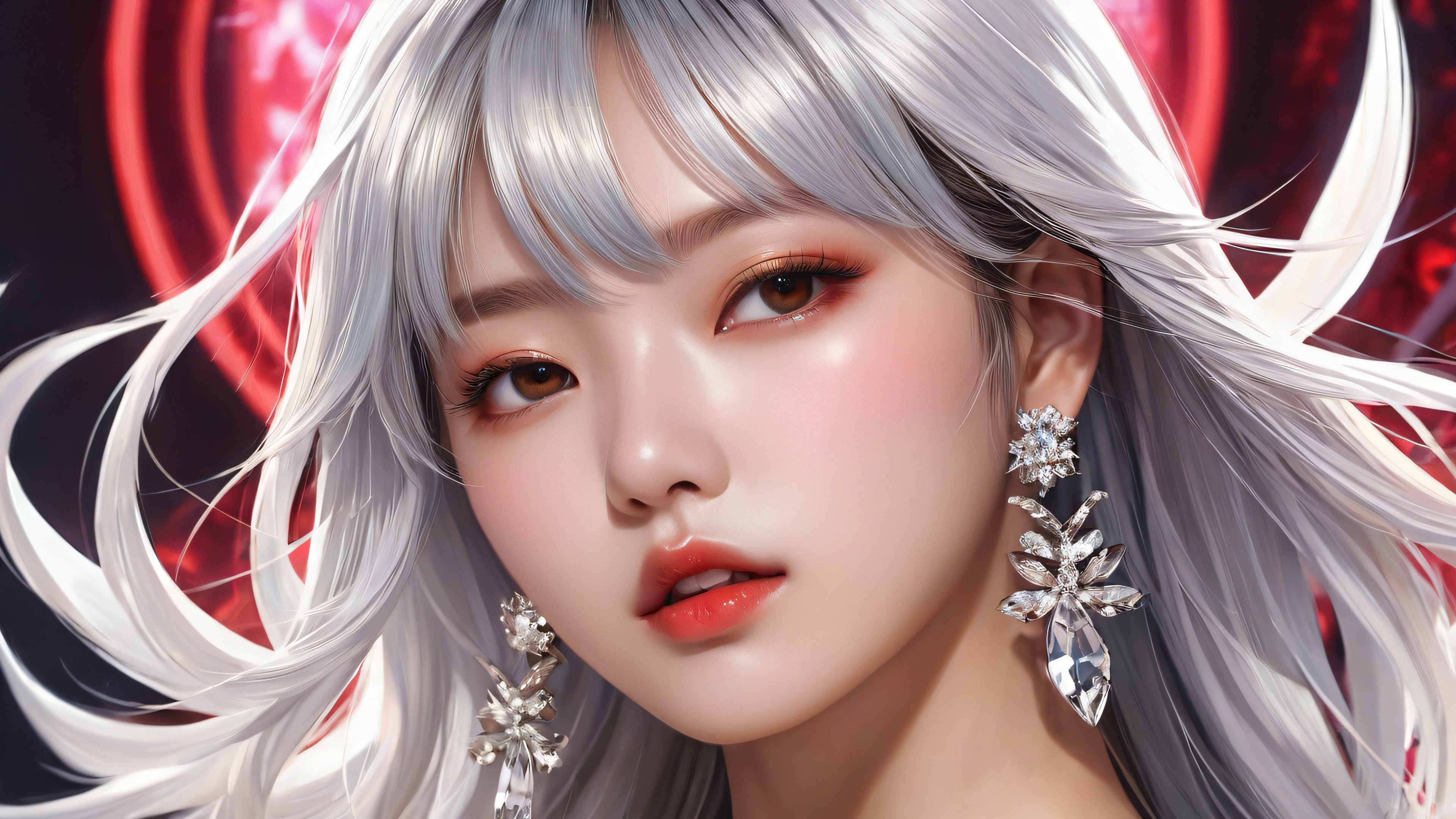 A breathtaking desktop wallpaper of Mad K-pop Idol, Perfectly clean vast pure void, extreme depth of field, Award-winning digital art, pristine clarity, Ethereal lighting. Radiant, brilliant colors, ray traced reflections, and pristine clarity. Bright and airy., Dominant dark reds and blacks with undertones of gray, 16:9 aspect ratio, ethereal lighting, radiant, brilliant colors, ray traced reflections, pristine clarity, award-winning digital art, epic breathtaking scale, stunning visual impact, perfect composition, highly textured surfaces, intricate micro-details, physically based rendering, macOS wallpaper aesthetic, masterpiece, highest quality, highly detailed, 8k resolution.