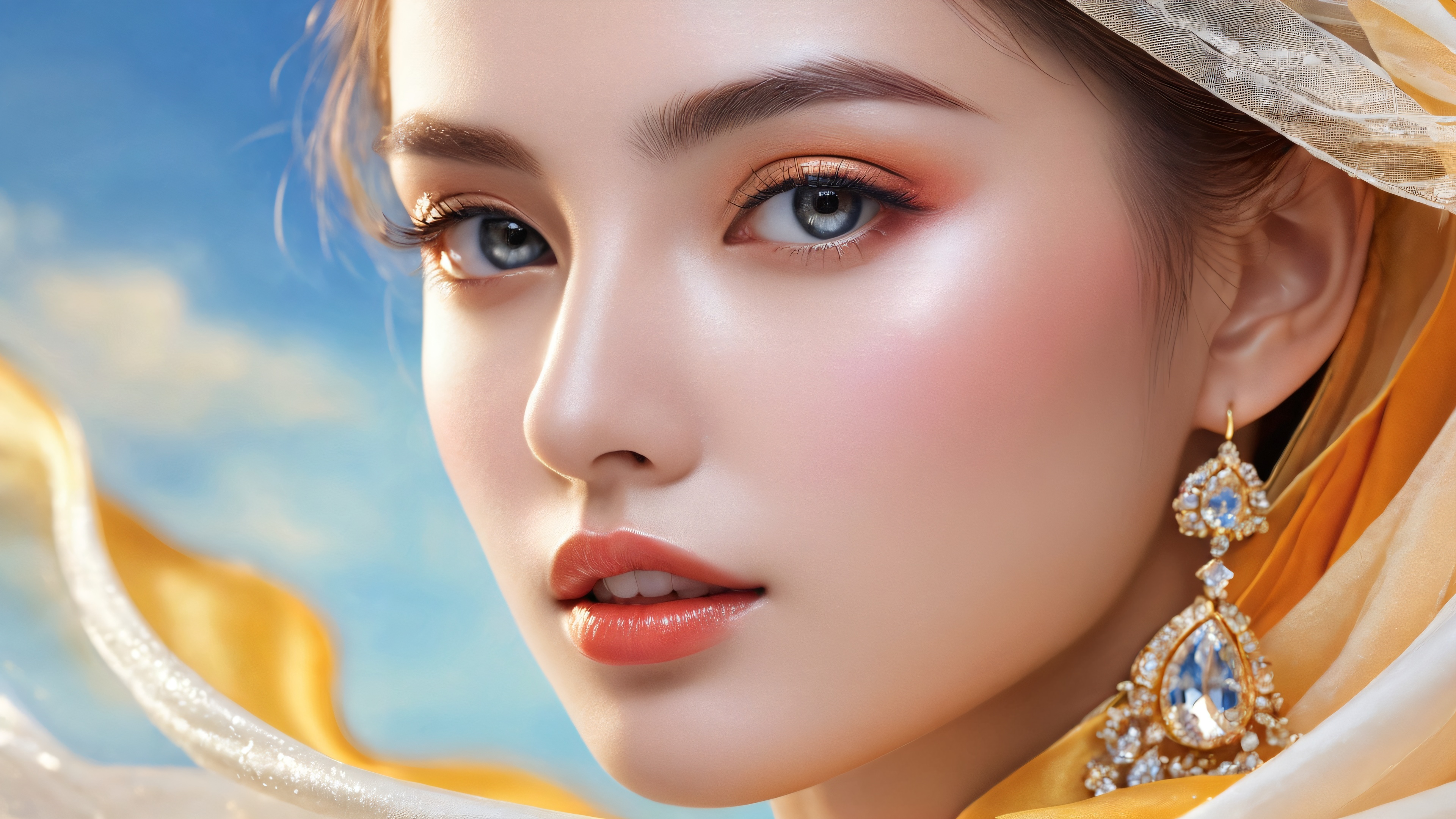 A breathtaking desktop wallpaper of Beautiful Face, Perfectly clean vast pure void, extreme depth of field, Award-winning digital art, pristine clarity, Ethereal lighting. Radiant, brilliant colors, ray traced reflections, and pristine clarity. Bright and airy., #FFC6B3, 16:9 aspect ratio, ethereal lighting, radiant, brilliant colors, ray traced reflections, pristine clarity, award-winning digital art, epic breathtaking scale, stunning visual impact, perfect composition, highly textured surfaces, intricate micro-details, physically based rendering, macOS wallpaper aesthetic, masterpiece, highest quality, highly detailed, 8k resolution.