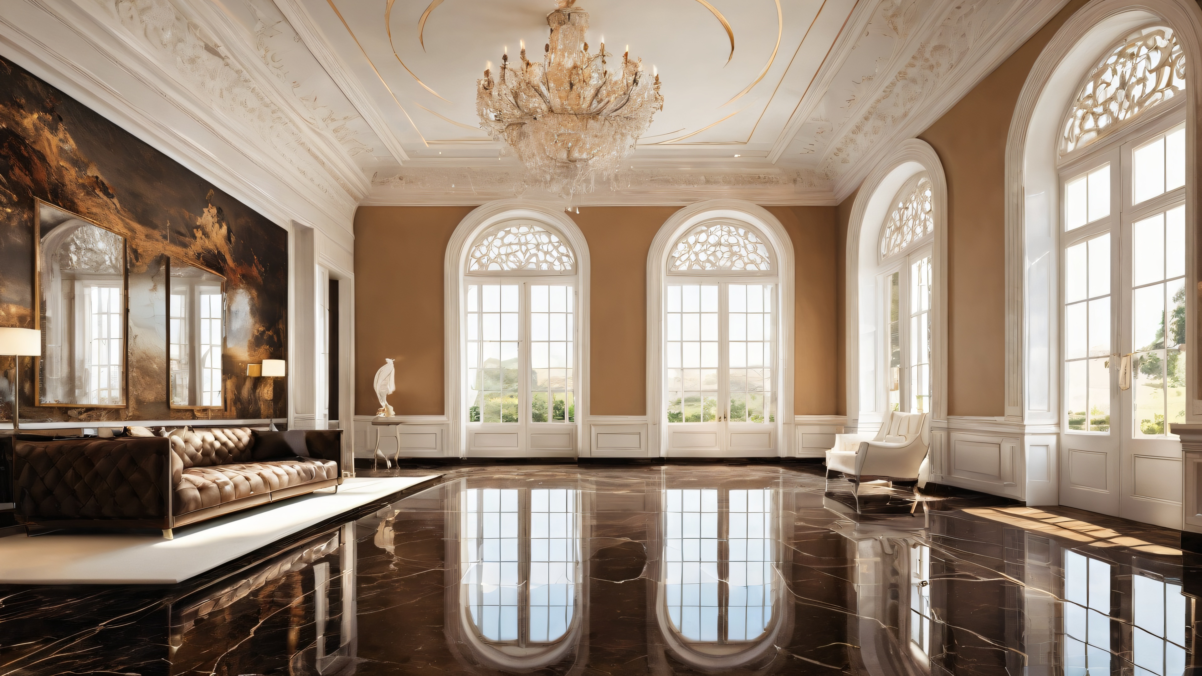 A breathtaking desktop wallpaper of Man, perfectly clean vast pure void, extreme depth of field with beige tile flooring, award-winning digital art, pristine clarity, ETHEREAL LIGHTING. Radiant, brilliant colors, ray traced reflections, and pristine clarity. Bright and airy., [‘Brown’, ‘Black’], 16:9 aspect ratio, ethereal lighting, radiant, brilliant colors, ray traced reflections, pristine clarity, award-winning digital art, epic breathtaking scale, stunning visual impact, perfect composition, highly textured surfaces, intricate micro-details, physically based rendering, macOS wallpaper aesthetic, masterpiece, highest quality, highly detailed, 8k resolution.