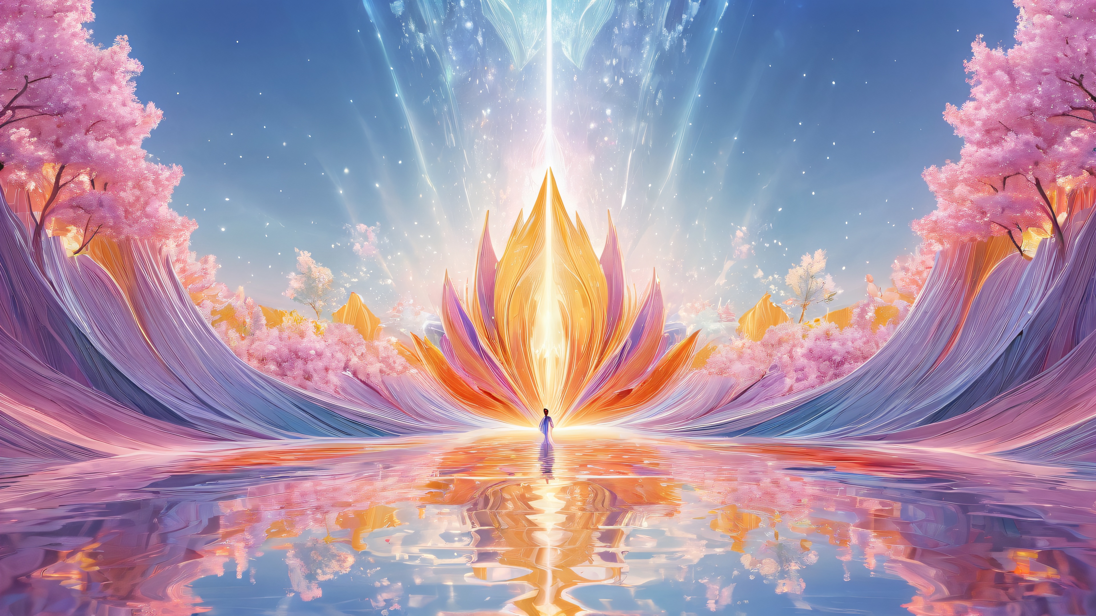 A breathtaking digital art masterpiece featuring an centered figure against a stunning, crystal-clear void with unparalleled depth and dimension. The scene is bathed in ethereal lighting that casts radiant, brilliant colors and intricate ray-traced reflections, creating a bright and airy effect. The 16:9 aspect ratio perfectly complements the epic scale of this visually striking wallpaper.