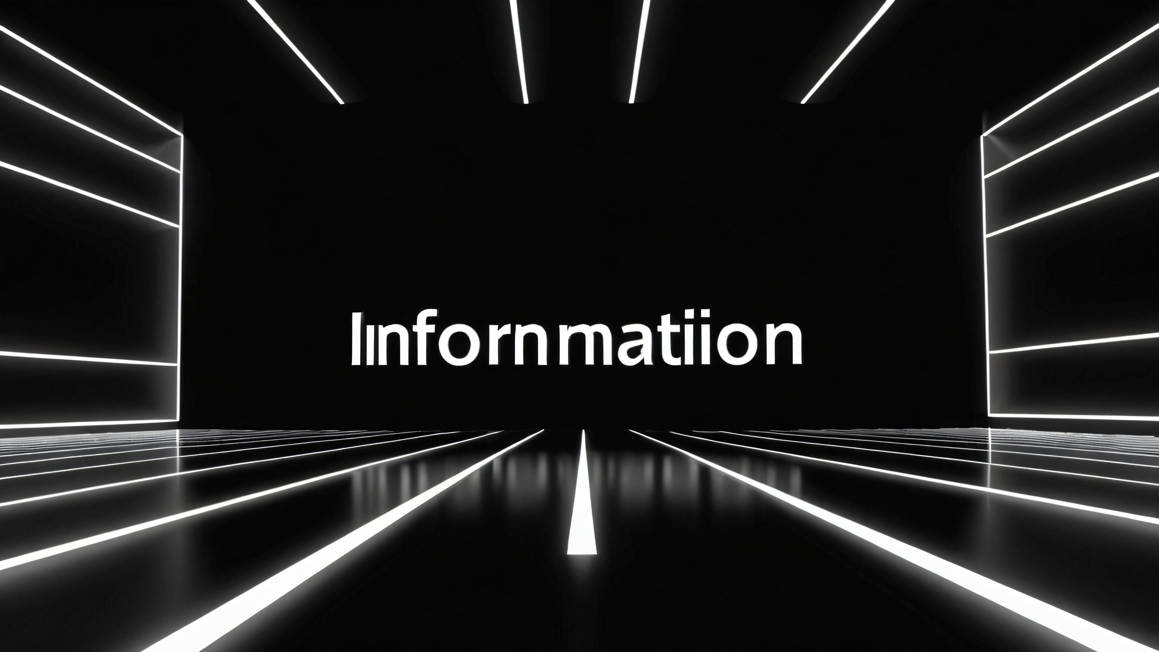 A breathtaking desktop wallpaper of {‘text’: ‘Information’}, Perfectly clean vast pure void, extreme depth of field in a stark black background., Award-winning digital art, pristine clarity with a flat graphic poster perspective., Ethereal lighting with radiant, brilliant colors, ray-traced reflections, and pristine clarity. Bright and airy., {‘palette’: [‘Black’, ‘White’], ‘mood’: ‘Monochromatic’}, 16:9 aspect ratio, ethereal lighting, radiant, brilliant colors, ray traced reflections, pristine clarity, award-winning digital art, epic breathtaking scale, stunning visual impact, perfect composition, highly textured surfaces, intricate micro-details, physically based rendering, macOS wallpaper aesthetic, masterpiece, highest quality, highly detailed, 8k resolution.