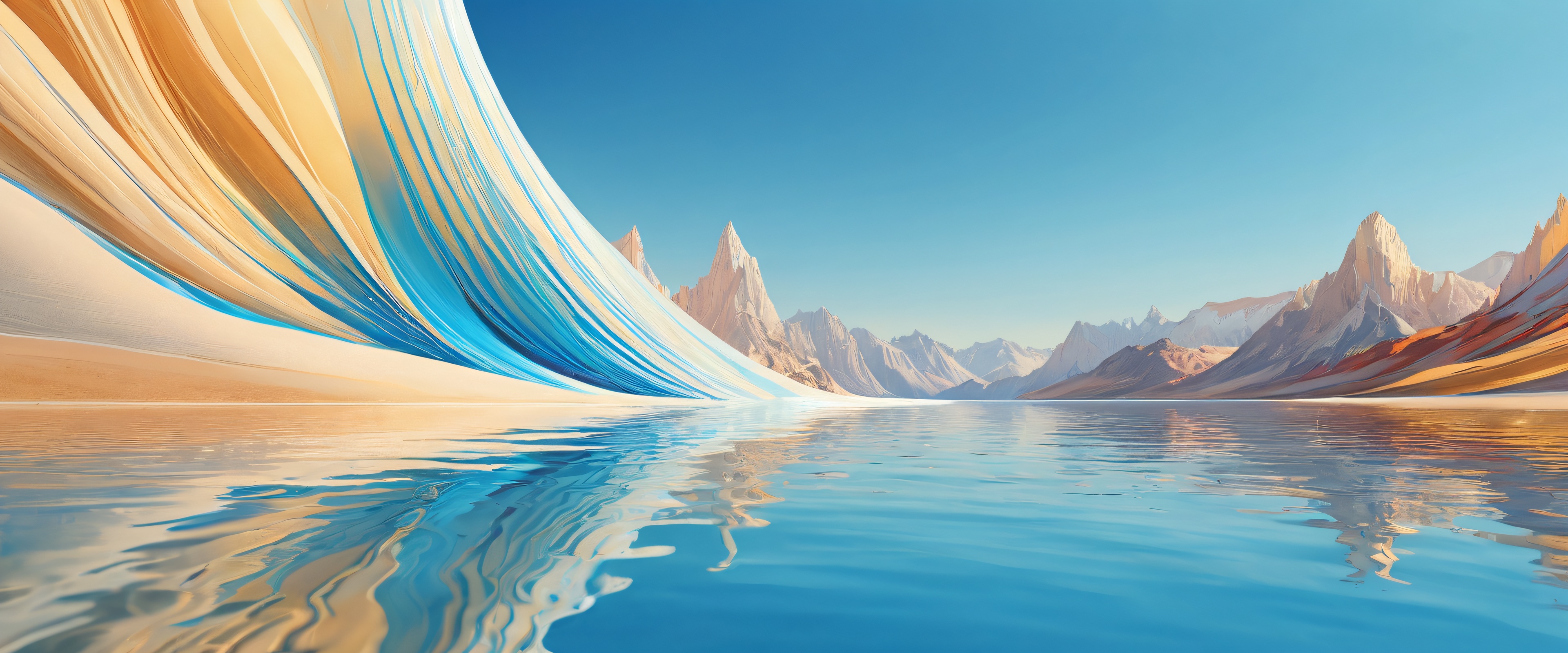 A breathtaking desktop wallpaper of Portrait, Perfectly clean vast pure void, extreme depth of field, Award-winning digital art, pristine clarity, Ethereal lighting. Radiant, brilliant colors, ray-traced reflections, and pristine clarity. Bright and airy., [‘Warm beige’, ‘Soft blue’], 21:9 ultrawide panoramic aspect ratio, epic wide shot, ethereal lighting, radiant, brilliant colors, ray traced reflections, pristine clarity, award-winning digital art, epic breathtaking scale, stunning visual impact, perfect composition, highly textured surfaces, intricate micro-details, physically based rendering, macOS wallpaper aesthetic, masterpiece, highest quality, highly detailed, 8k resolution.