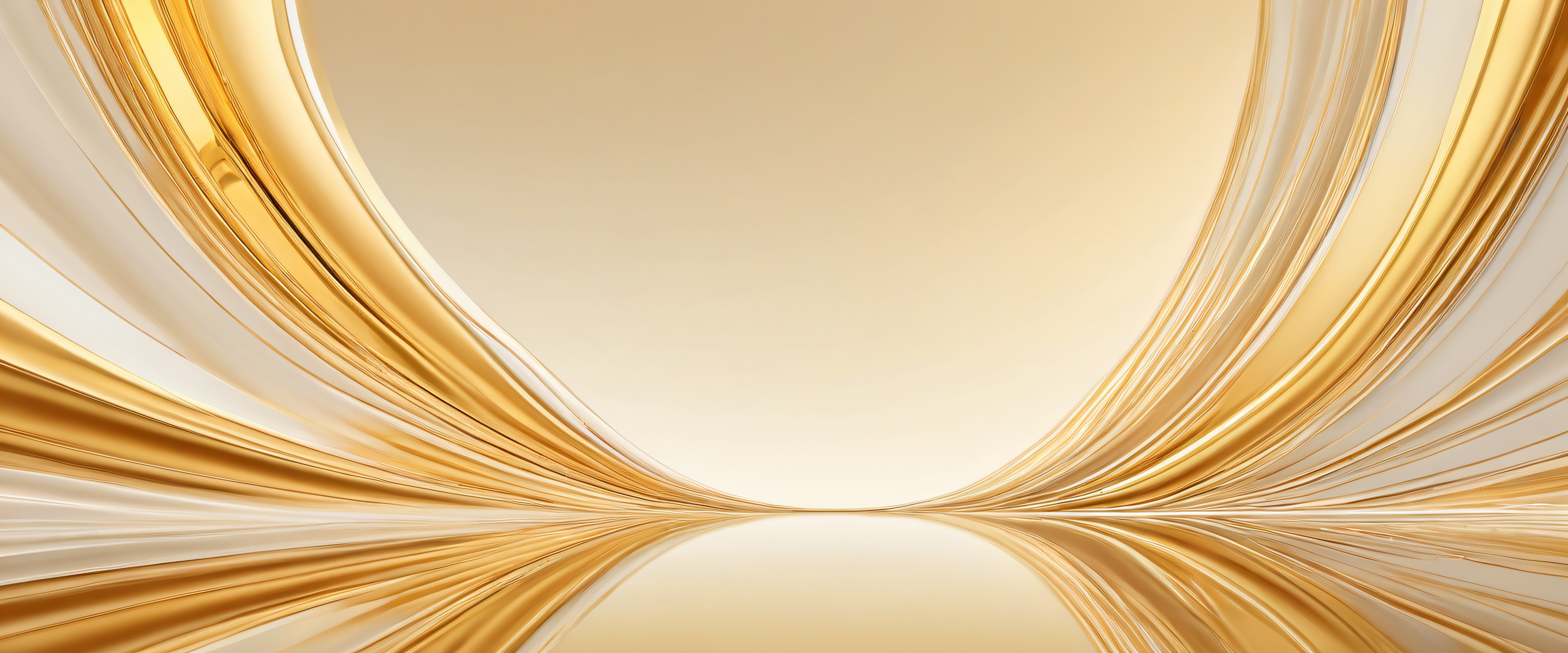 A breathtaking desktop wallpaper of Centered Composition, Perfectly Clean Vast Pure Void, Extreme Depth of Field, Award-Winning Digital Art, Pristine Clarity, Ethereal Lighting: Radiant, Brilliant Colors, Ray Traced Reflections, Bright and Airy, [‘Warm Beige’, ‘Rich Gold’, ‘Soft Cream’], 21:9 ultrawide panoramic aspect ratio, epic wide shot, ethereal lighting, radiant, brilliant colors, ray traced reflections, pristine clarity, award-winning digital art, epic breathtaking scale, stunning visual impact, perfect composition, highly textured surfaces, intricate micro-details, physically based rendering, macOS wallpaper aesthetic, masterpiece, highest quality, highly detailed, 8k resolution.