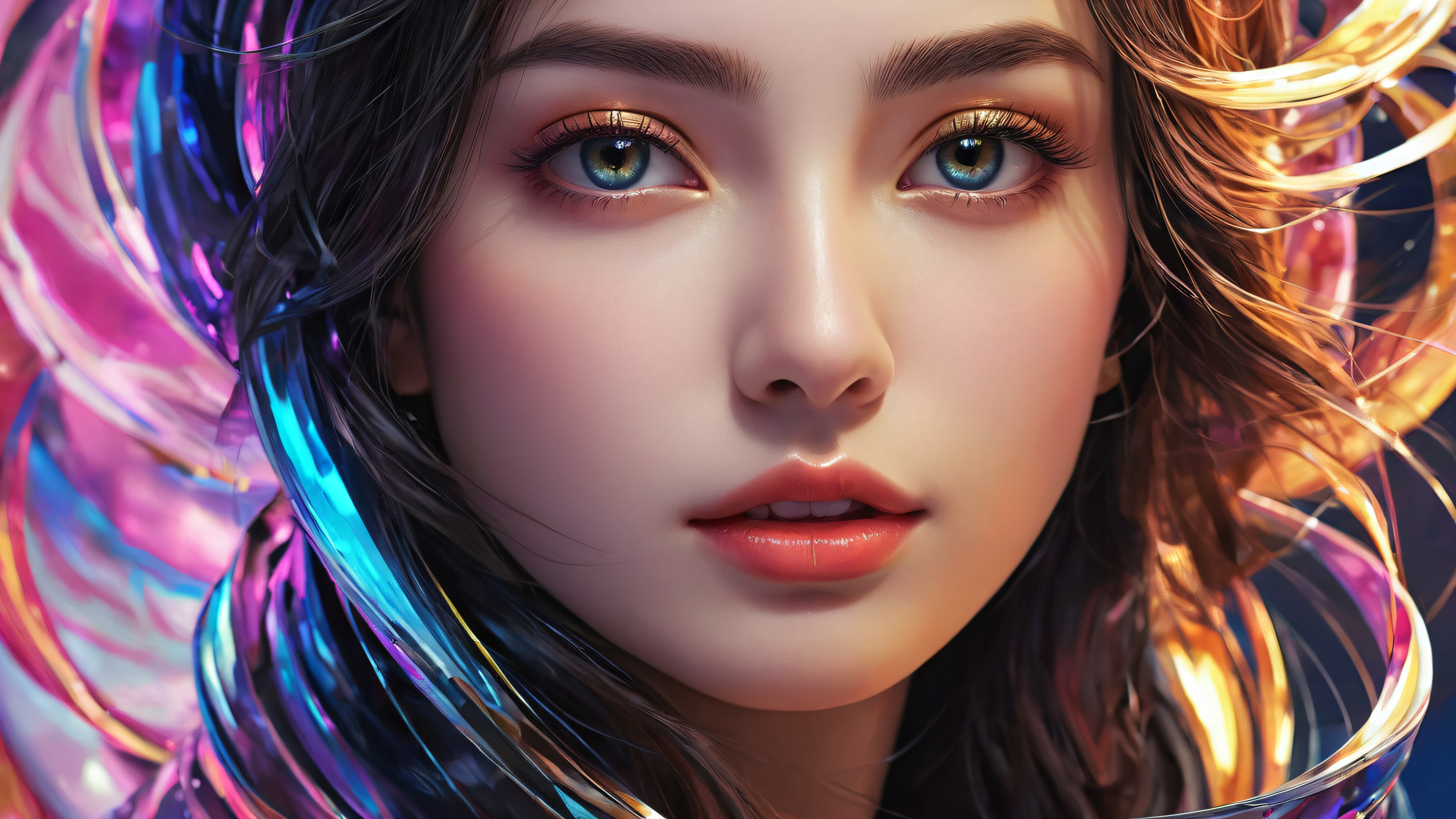 A breathtaking desktop wallpaper of Portraits, Perfectly clean vast pure void, extreme depth of field, Award-winning digital art, pristine clarity, Ethereal lighting. Radiant, brilliant colors, ray traced reflections, and pristine clarity. Bright and airy., Dark, 16:9 aspect ratio, ethereal lighting, radiant, brilliant colors, ray traced reflections, pristine clarity, award-winning digital art, epic breathtaking scale, stunning visual impact, perfect composition, highly textured surfaces, intricate micro-details, physically based rendering, macOS wallpaper aesthetic, masterpiece, highest quality, highly detailed, 8k resolution.