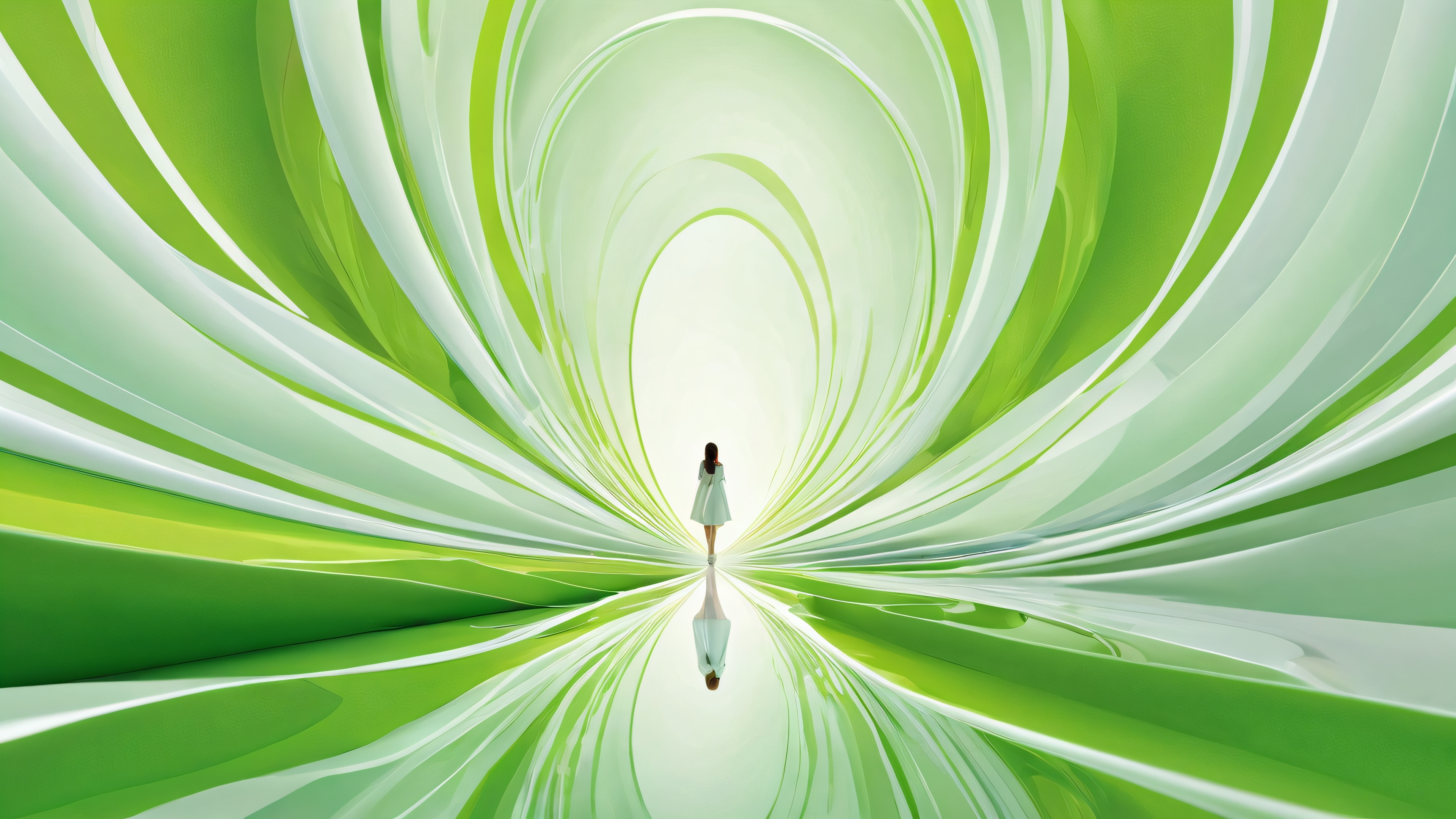 A breathtaking desktop wallpaper of Centered Figure, Perfectly clean vast pure void with extreme depth of field and a hint of serenity, Award-winning digital art with pristine clarity and stunning detail, Ethereal lighting with radiant, brilliant colors and ray-traced reflections for an unparalleled sense of brightness and airiness, Soft Green and Creamy White hues, 16:9 aspect ratio, ethereal lighting, radiant, brilliant colors, ray traced reflections, pristine clarity, award-winning digital art, epic breathtaking scale, stunning visual impact, perfect composition, highly textured surfaces, intricate micro-details, physically based rendering, macOS wallpaper aesthetic, masterpiece, highest quality, highly detailed, 8k resolution.