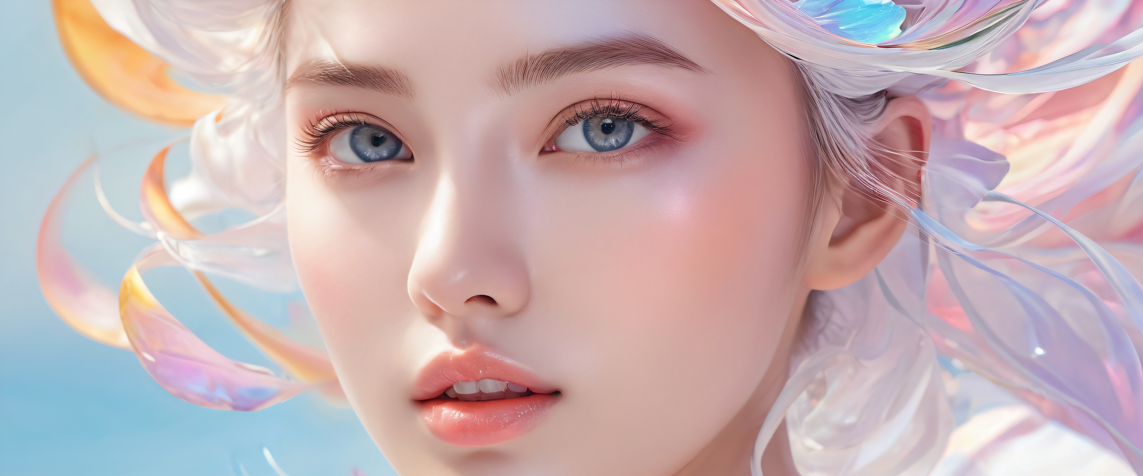 A breathtaking desktop wallpaper of Beautiful Face, Perfectly clean vast pure void, extreme depth of field, cinematic, Award-winning digital art, pristine clarity, detailed illustration, Ethereal lighting, radiant brilliant colors, ray traced reflections, bright and airy, [‘Pristine whites’, ‘Soft pastels’], 21:9 ultrawide panoramic aspect ratio, epic wide shot, ethereal lighting, radiant, brilliant colors, ray traced reflections, pristine clarity, award-winning digital art, epic breathtaking scale, stunning visual impact, perfect composition, highly textured surfaces, intricate micro-details, physically based rendering, macOS wallpaper aesthetic, masterpiece, highest quality, highly detailed, 8k resolution.