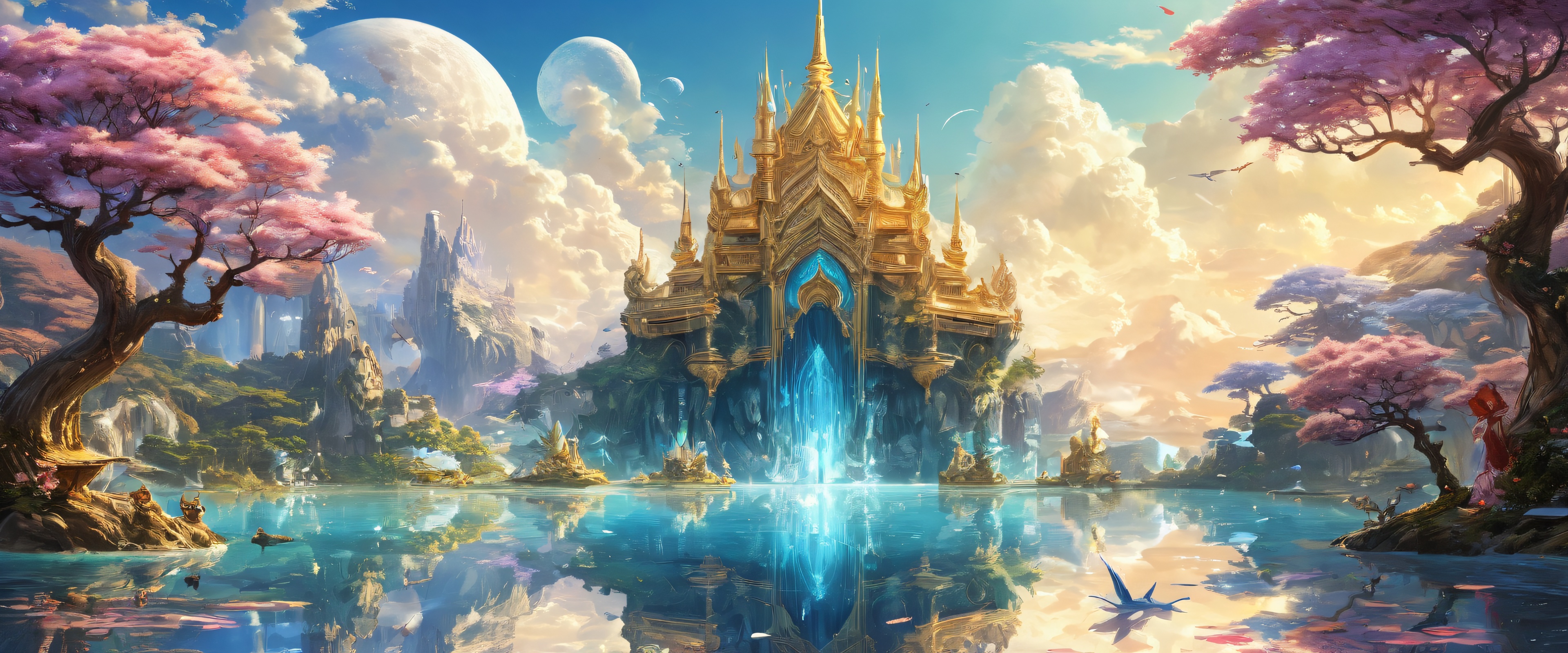 Step into the breathtaking world of fantasy realms, where radiant, brilliant colors and ray-traced reflections transport you to an epic wide shot of ethereal lighting. Pristine clarity and award-winning digital art bring highly textured surfaces and intricate micro-details to life in this stunning visual masterpiece, perfect for your desktop or PC.