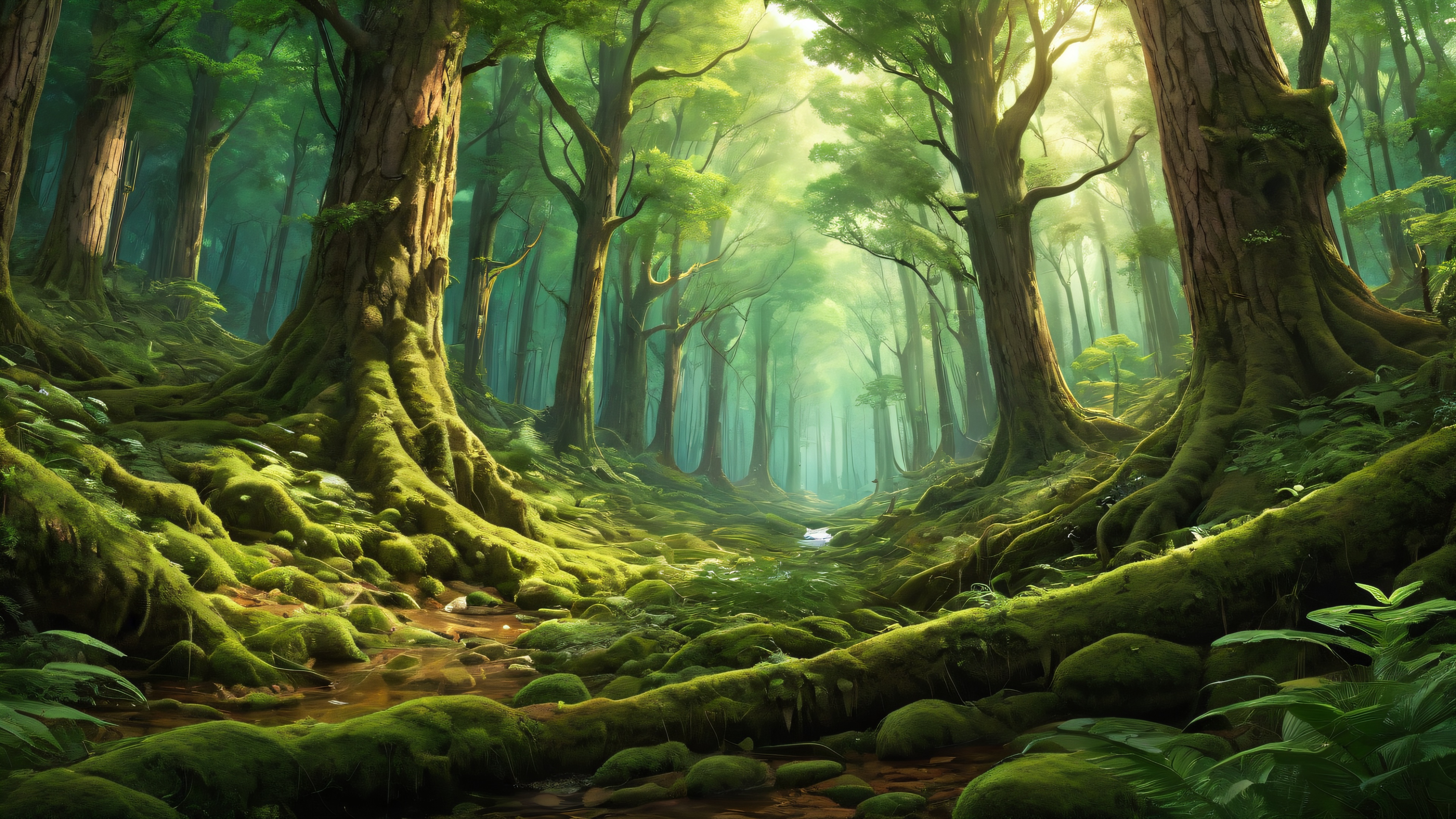 A breathtaking desktop wallpaper of forest, perfectly clean vast pure void, extreme depth of field, award-winning digital art, pristine clarity, ETHEREAL LIGHTING. Radiant, brilliant colors, ray traced reflections, and pristine clarity. Bright and airy.., [‘green’, ‘brown’], 16:9 aspect ratio, ethereal lighting, radiant, brilliant colors, ray traced reflections, pristine clarity, award-winning digital art, epic breathtaking scale, stunning visual impact, perfect composition, highly textured surfaces, intricate micro-details, physically based rendering, macOS wallpaper aesthetic, masterpiece, highest quality, highly detailed, 8k resolution.