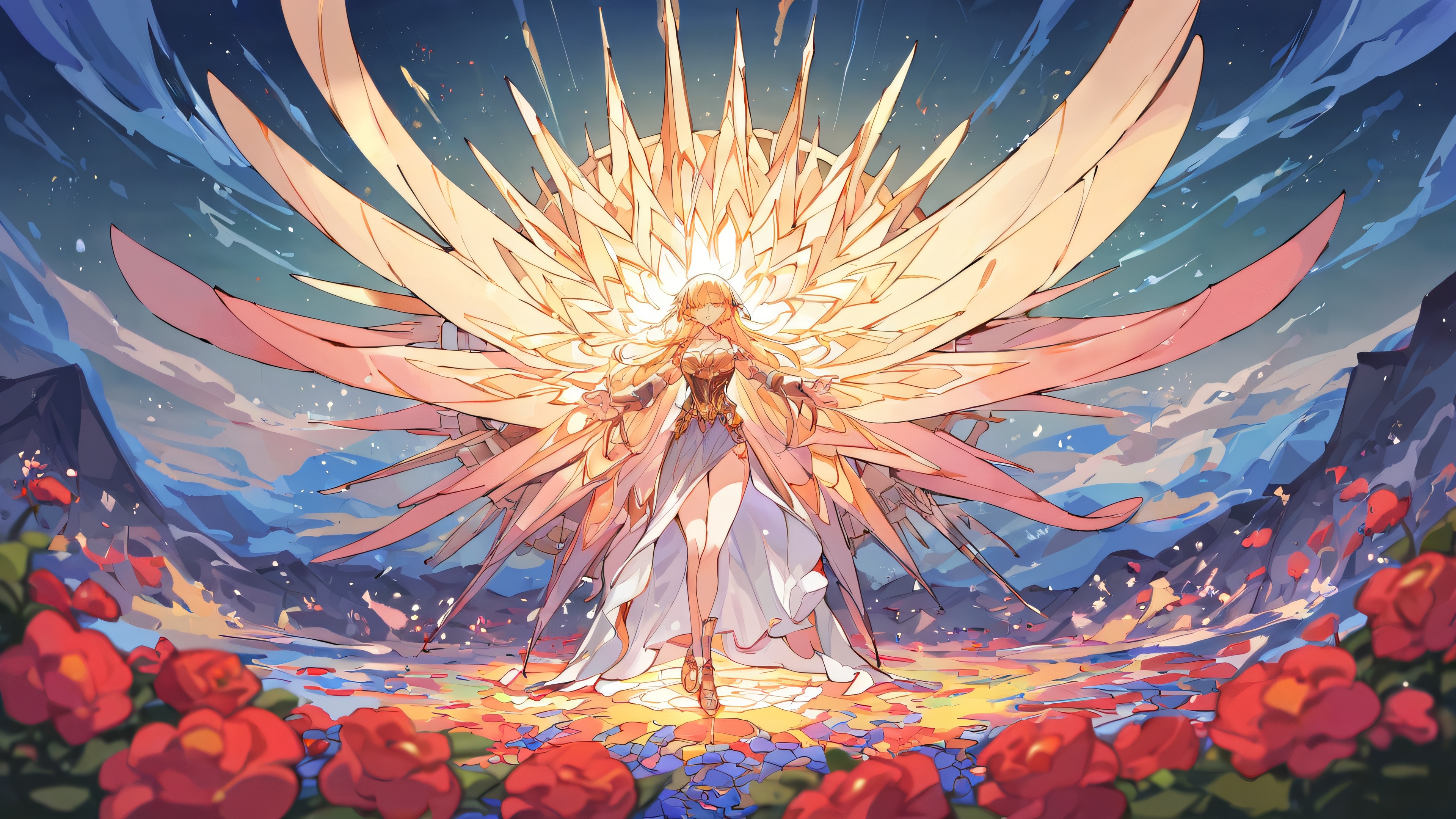 Epic Anime Goddesses Amidst Celestial Hues Desktop Wallpaper Free Download:
