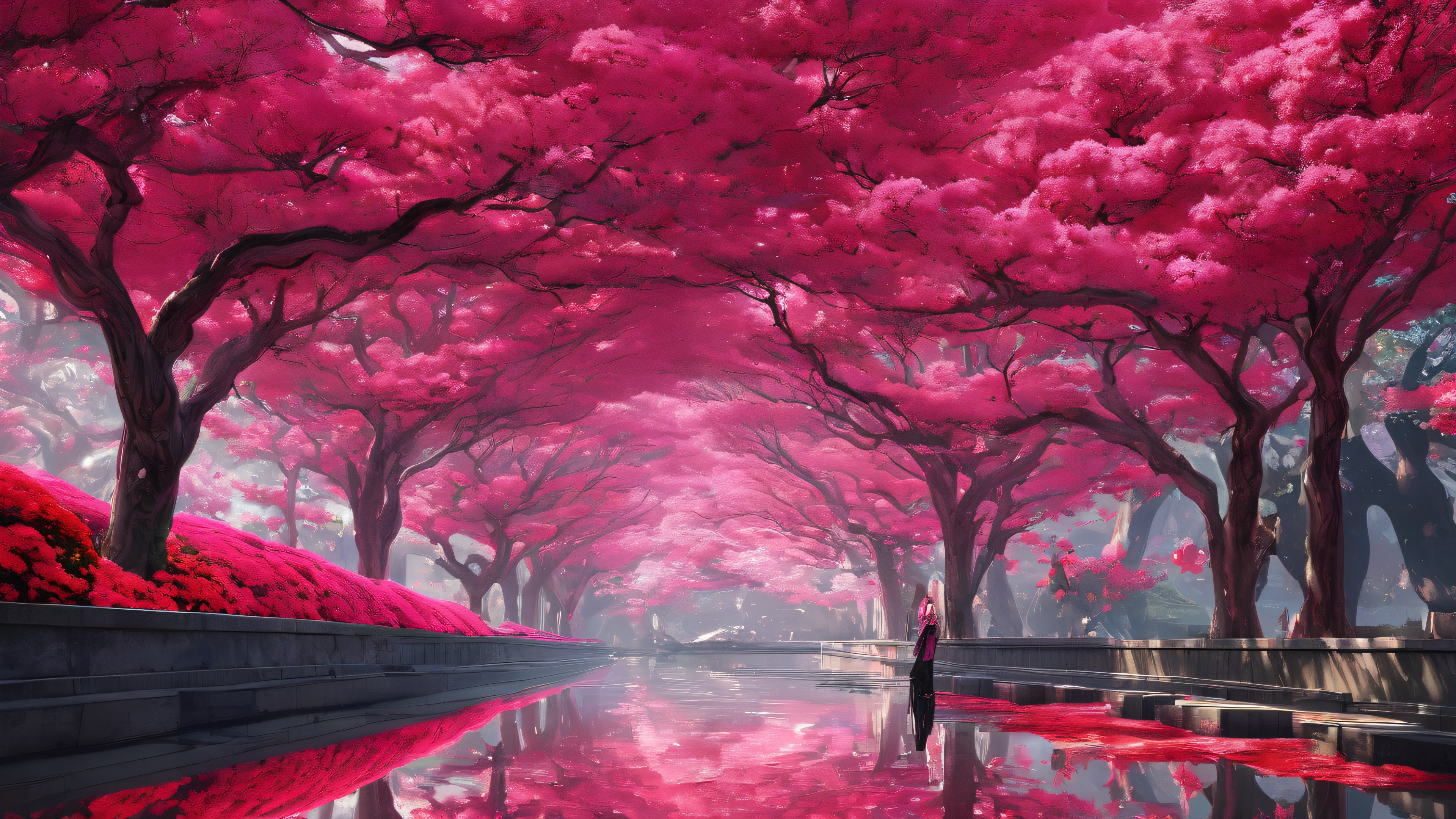 A breathtaking desktop wallpaper of K-pop Idol, perfectly clean vast pure void, extreme depth of field, award-winning digital art, clarté immaculée, ETHEREAL LIGHTING. Radiant, brilliant colors, réflexions tracées par rayons, et une clarté immaculée. Bright and airy., [‘Deep Pink’, ‘Dark Red’, ‘Black’, ‘Grey’], 16:9 rapport hauteur/largeur, éclairage éthéré, radiant, brilliant colors, réflexions tracées par rayons, clarté immaculée, award-winning digital art, epic breathtaking scale, stunning visual impact, perfect composition, highly textured surfaces, intricate micro-details, physically based rendering, macOS wallpaper aesthetic, chef-d'œuvre, highest quality, highly detailed, 8k resolution.