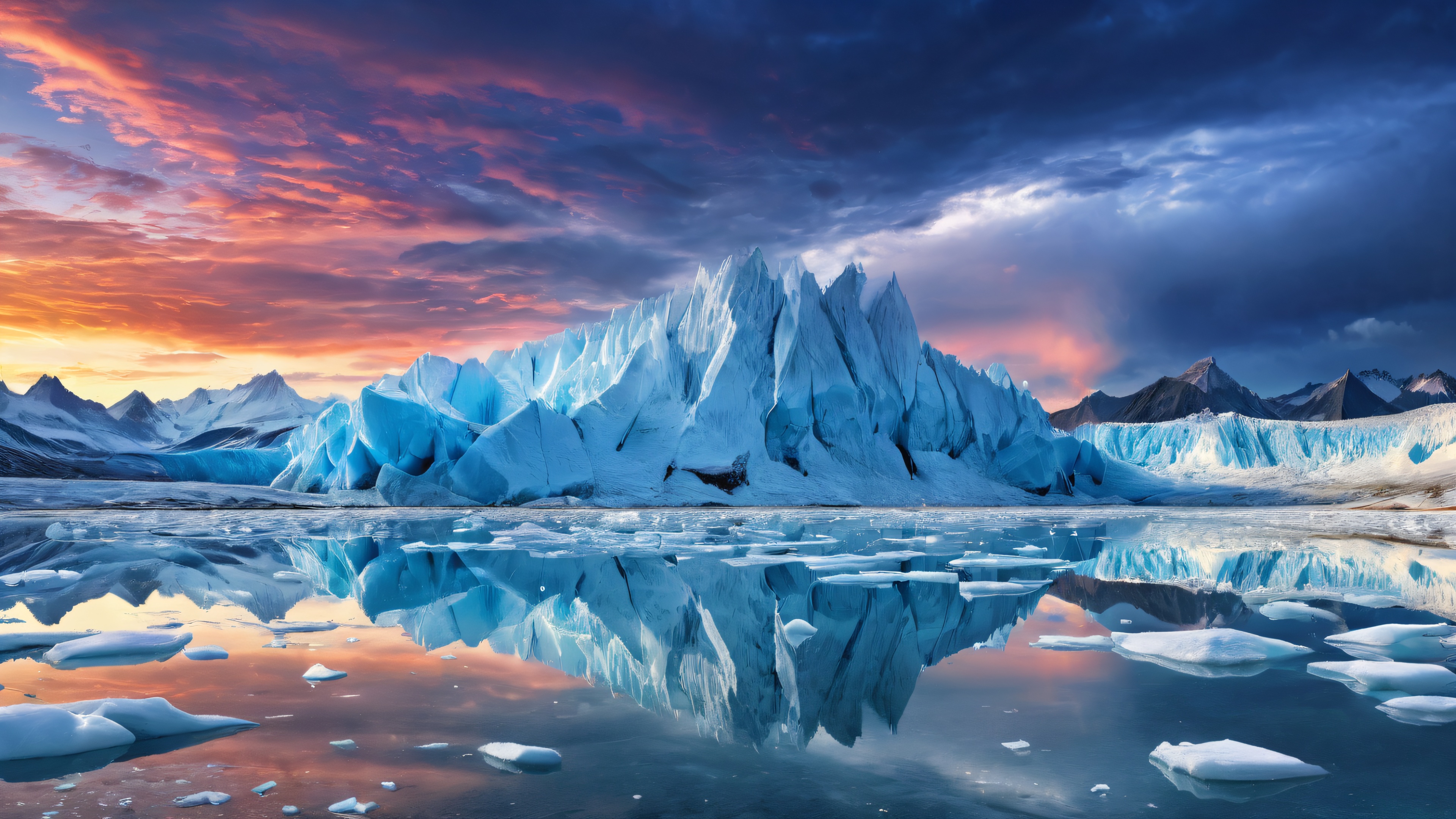This stunning 8K resolution wallpaper features an awe-inspiring glacier landscape with intricate details and textures. The scene is bathed in ethereal lighting, casting a warm glow over the vast, vide vierge. In the distance, a prairie stretches out, adding depth to the composition. The brilliant colors and ray-traced reflections create a sense of radiance, while the physically based rendering ensures the highest level of visual fidelity.