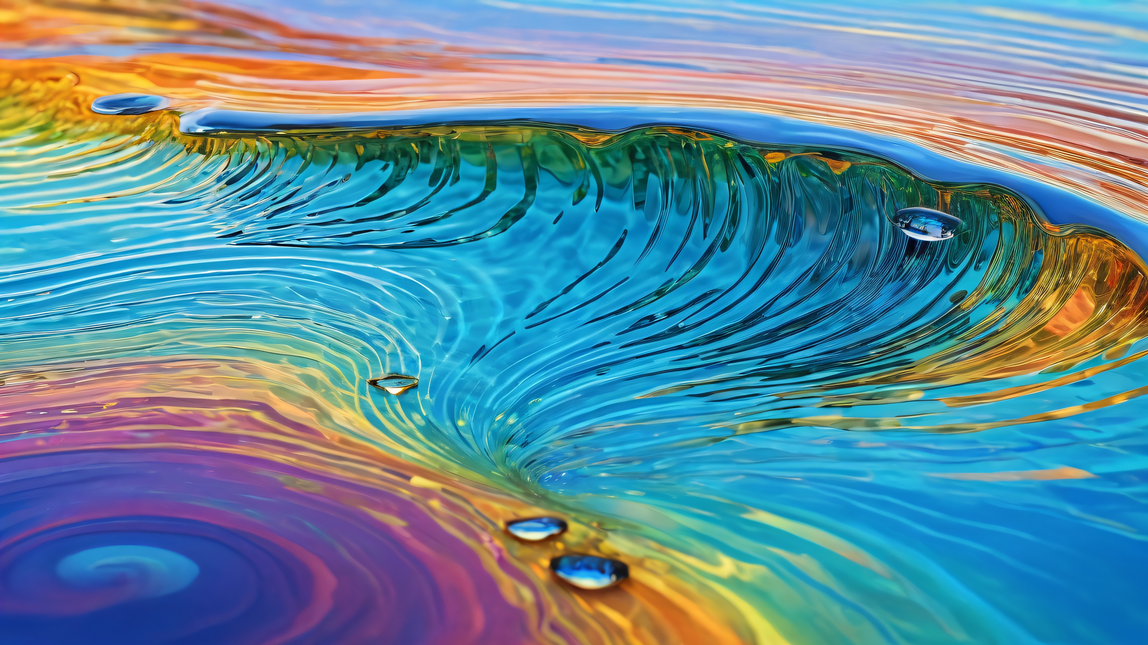 A breathtaking desktop wallpaper of glass_marsble, perfectly clean vast pure void with ripples of water, profondeur de champ extrême, art numérique primé, clarté immaculée, vibrant, ÉCLAIRAGE ÉTHÉRÉ: Radiant, couleurs brillantes, réflexions tracées par rayons, et une clarté immaculée. Lumineux et aéré., rainbow, 16:9 rapport hauteur/largeur, éclairage éthéré, radiant, couleurs brillantes, réflexions tracées par rayons, clarté immaculée, art numérique primé, échelle épique à couper le souffle, impact visuel époustouflant, composition parfaite, surfaces très texturées, micro-détails complexes, rendu basé sur la physique, Esthétique du fond d'écran macOS, chef-d'œuvre, la plus haute qualité, très détaillé, 8k résolution.