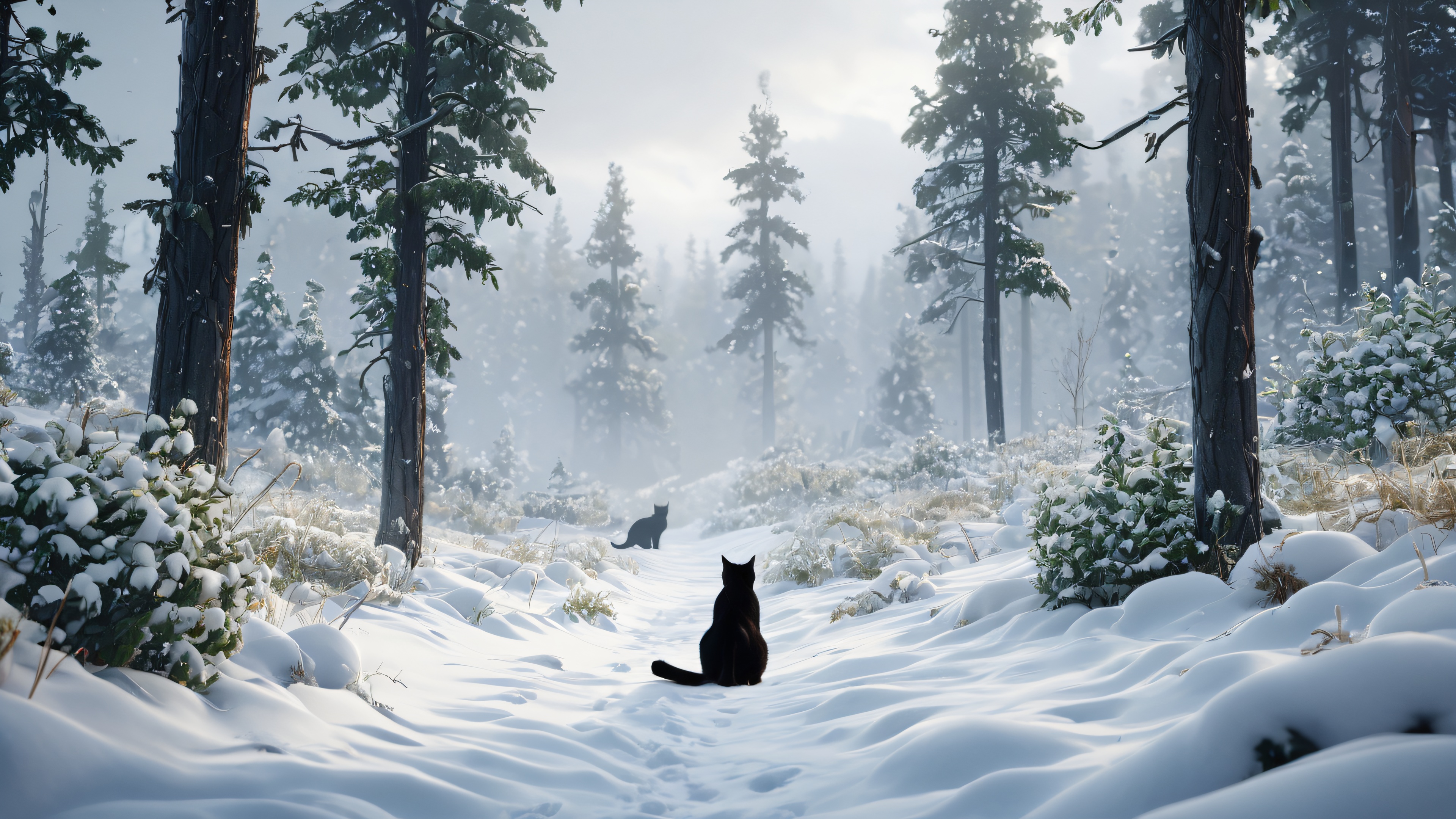 Epic Snowy Whispers of Feline Secrets Desktop Wallpaper Free Download: