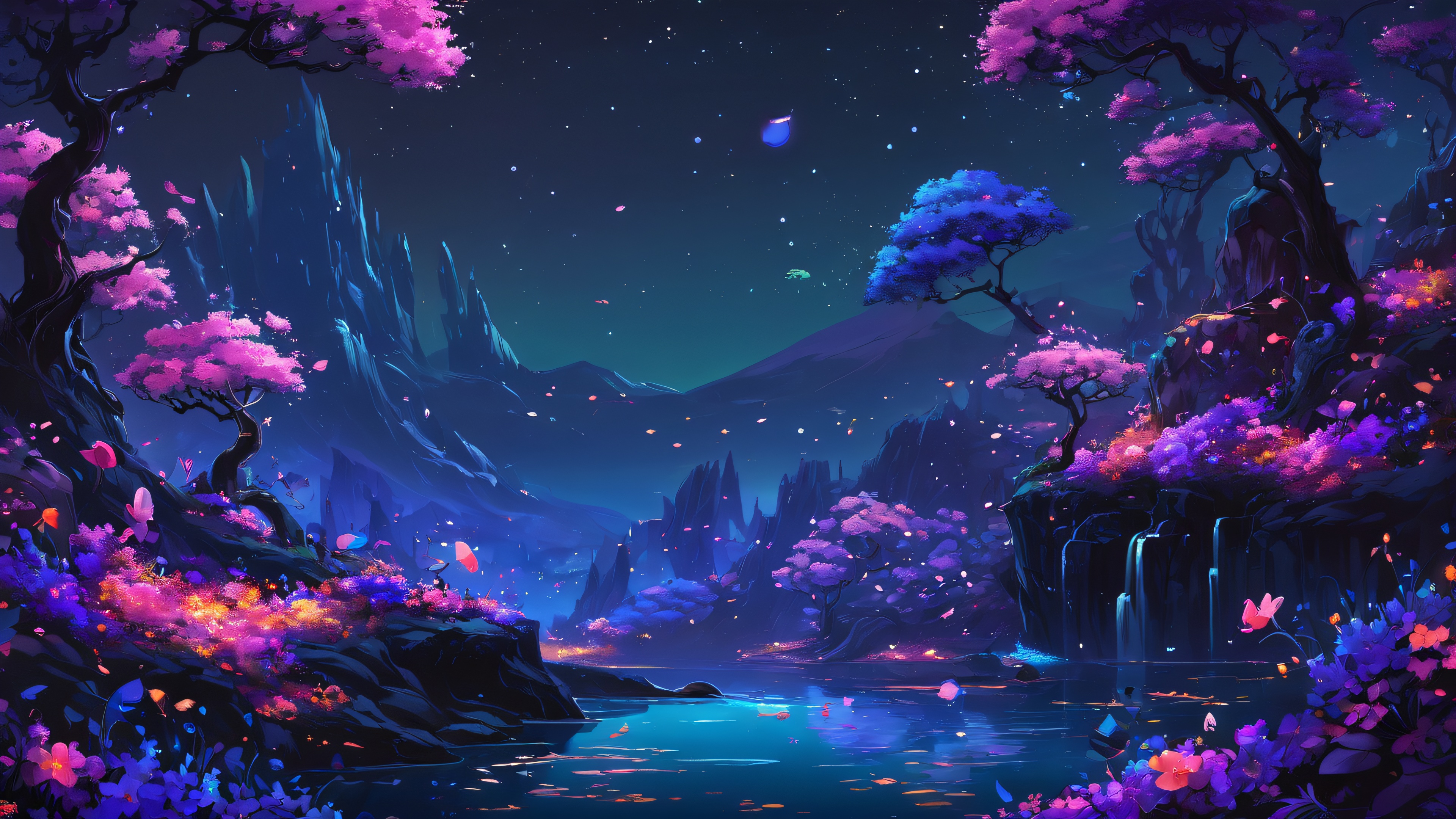Indulge in the breathtaking beauty of this award-winning digital art masterpiece. A pristine void stretches far into the distance, punctuated by vibrant pastel colors that evoke a sense of wonder and magic. The sleek dark mode aesthetic is elevated by deep perfect blacks and striking contrast, while luminescent accents add an air of elegance. Physically based rendering and intricate micro-details create a highly textured surface, inviting you to get lost in the epic scale and stunning visual impact.
