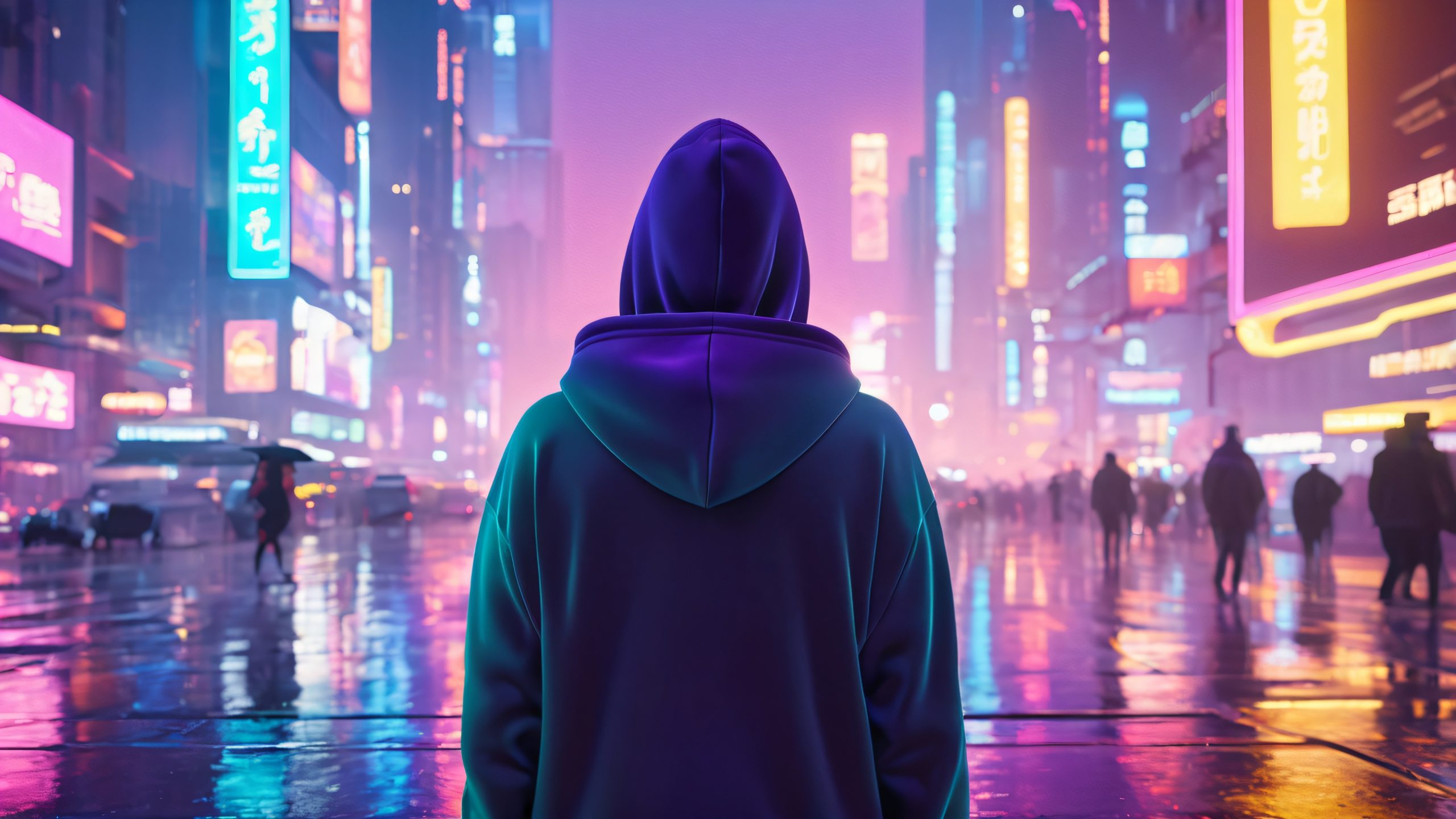 A cinematic 4K wallpaper featuring a futuristic cityscape at dusk, with towering skyscrapers and neon-lit billboards reflecting off the wet streets. The scene is bustling with speeding cars and flying drones, while a lone figure navigates through the crowded streets. The urban metropolis blends traditional and modern architecture, with a hint of futuristic tech. The atmosphere is warm and golden, contrasted with the cold blue undertones of the city’s neon lights and dark shadows. A palette of deep blues, purples, and magentas is balanced with touches of warm gold and neon green, creating a visually stunning masterpiece.