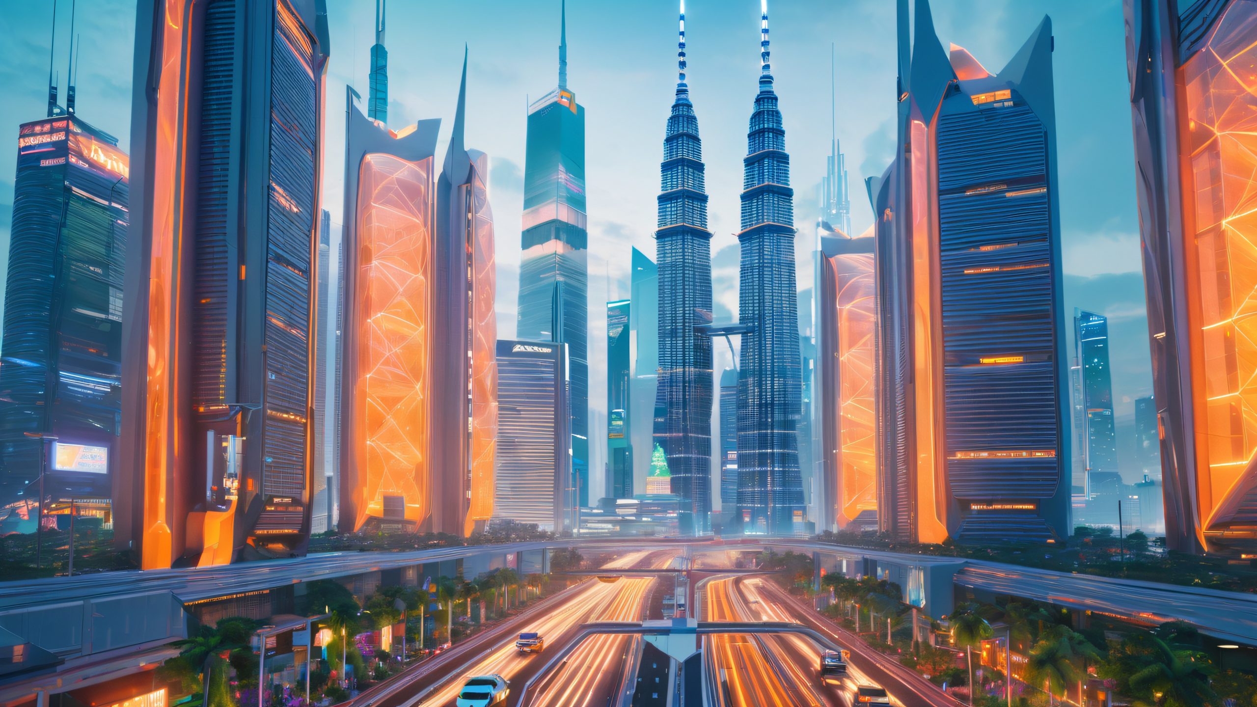 This stunning 4K wallpaper captures the essence of Jakarta’s cutting-edge technology scene. The interconnected network of servers and data centers glows with a soft blue light, surrounded by towering skyscrapers and hovering drones. The neon accents add a touch of hyper-realism to this cyberpunk masterpiece, blending cool blues and warm oranges in a cinematic display of contrasting technological and human elements.