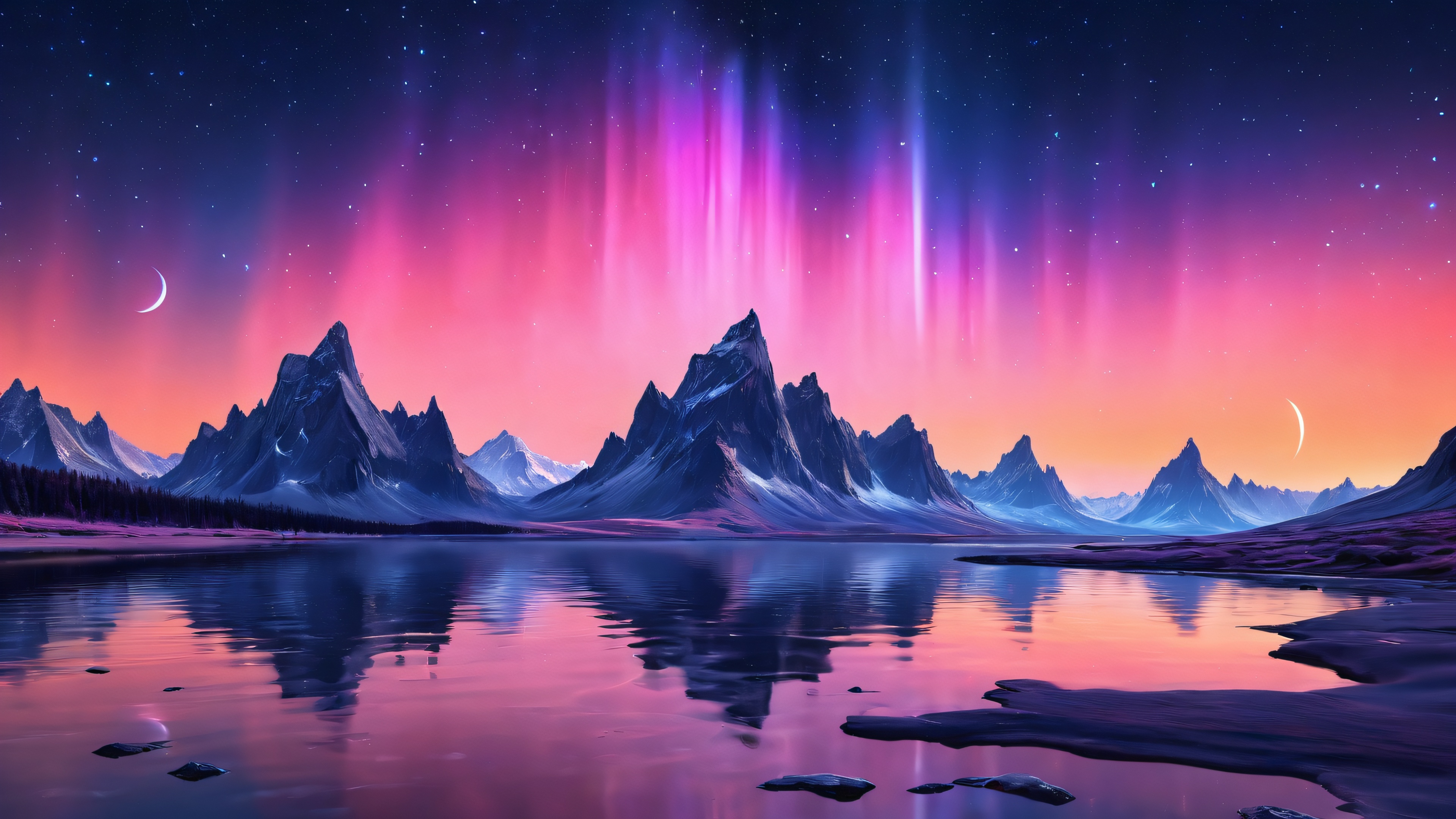 A breathtaking desktop wallpaper of Aurora, perfectly clean vast pure void, extreme depth of field, award-winning digital art, pristine clarity, Ethereal Lighting. Radiant, brilliant colors, ray traced reflections, and pristine clarity. Bright and airy., [‘Midnight Blue’, ‘Soft Pink’, ‘Electric Orange’], 16:9 aspect ratio, ethereal lighting, radiant, brilliant colors, ray traced reflections, pristine clarity, award-winning digital art, epic breathtaking scale, stunning visual impact, perfect composition, highly textured surfaces, intricate micro-details, physically based rendering, macOS wallpaper aesthetic, masterpiece, highest quality, highly detailed, 8k resolution.