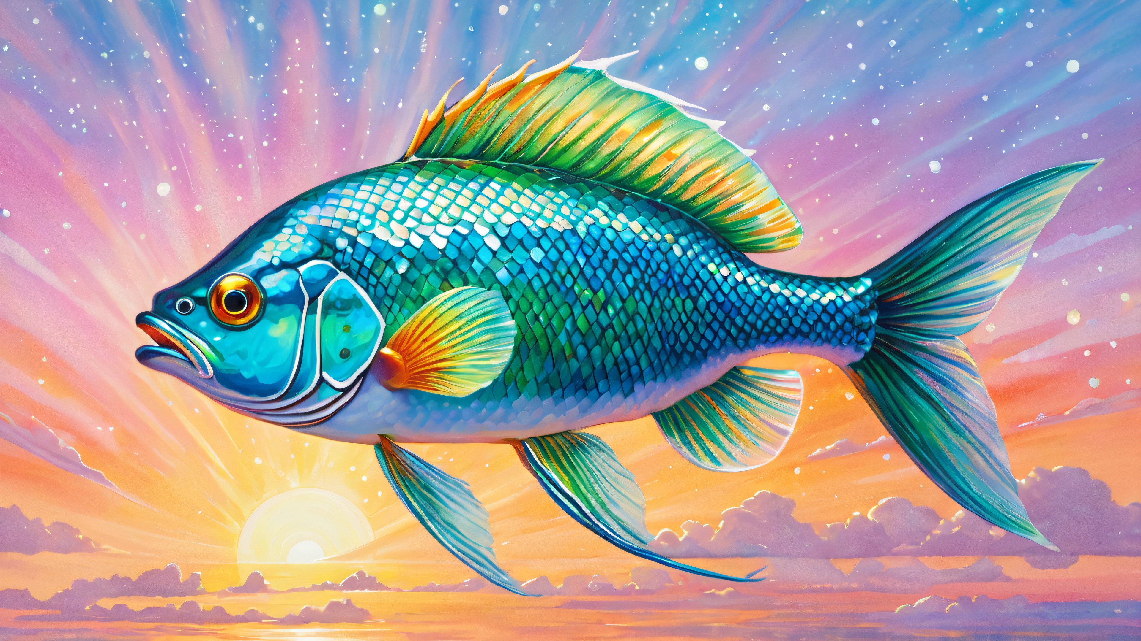 Glowing Gouache Fish Oracle 4K UHD Wallpaper Free Download: