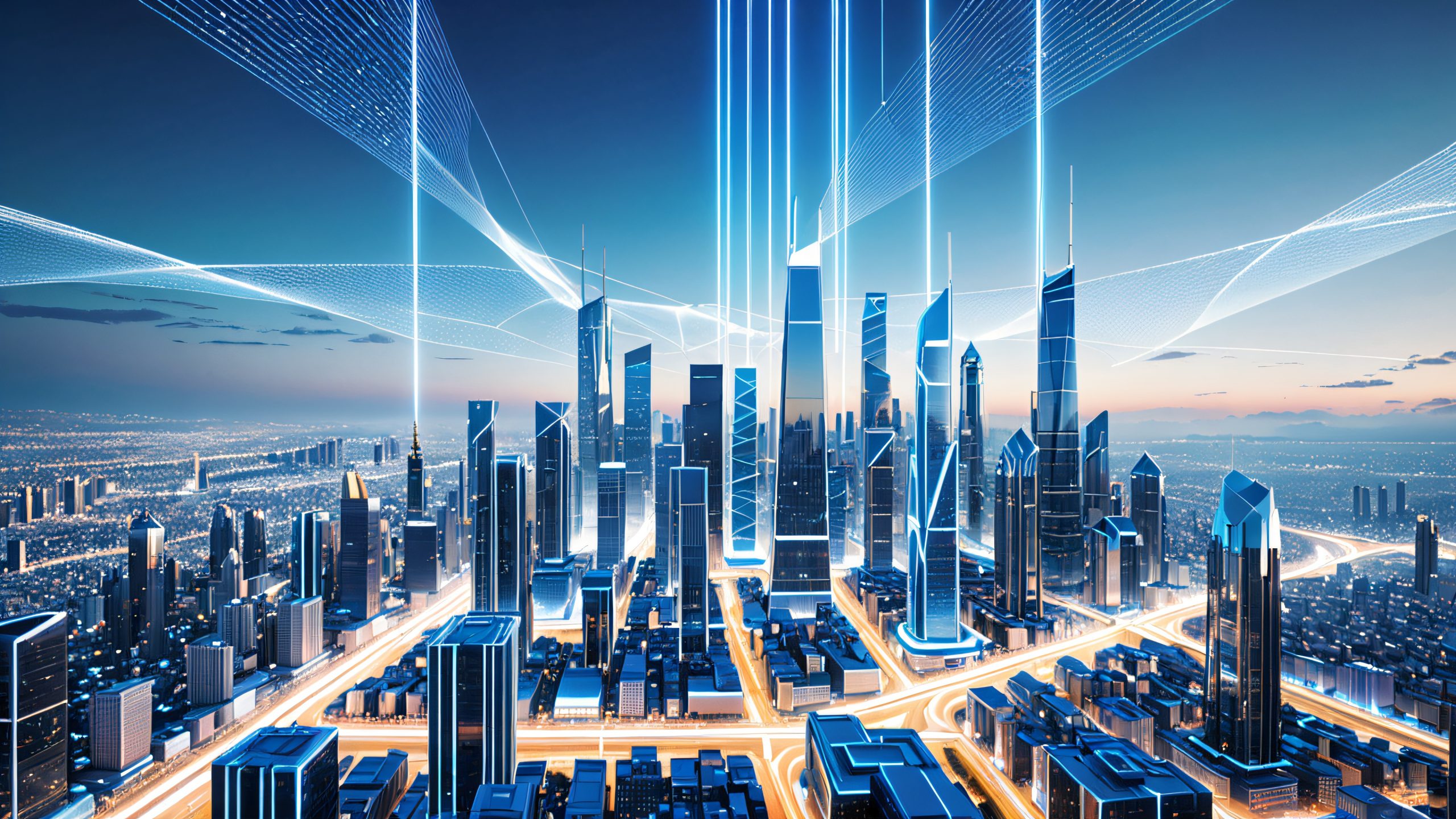 Futuristic Godot Wireframe Cityscape Wallpaper – A Masterpiece for Your 4K Desktop