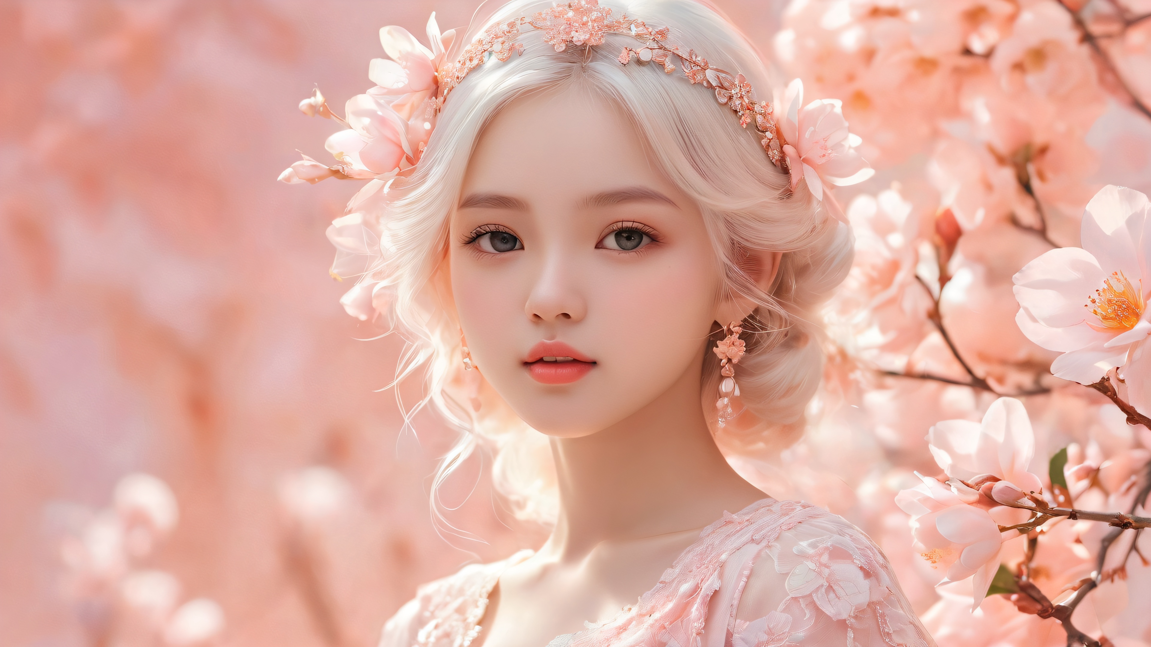 A breathtaking desktop wallpaper of Girl, Perfectly clean vast pure void with extreme depth of field and minimal distractions, 受賞歴のあるデジタルアート, pristine clarity with intricate details and subtle textures, Ethereal lighting with radiant brilliant colors, レイトレースされた反射, そして純粋な透明感. 明るく風通しが良い。, [‘Pastel Pink’, ‘Soft Peach’], 16:9 アスペクト比, 幻想的な照明, 輝く, 鮮やかな色, レイトレースされた反射, 原始的な透明度, 受賞歴のあるデジタルアート, 息を呑むような壮大なスケール, 見事な視覚的インパクト, 完璧な構成, 高度にテクスチャーのある表面, 複雑な微細なディテール, 物理ベースのレンダリング, macOSの壁紙の美しさ, 傑作, 最高品質, 非常に詳細な, 8k解像度.