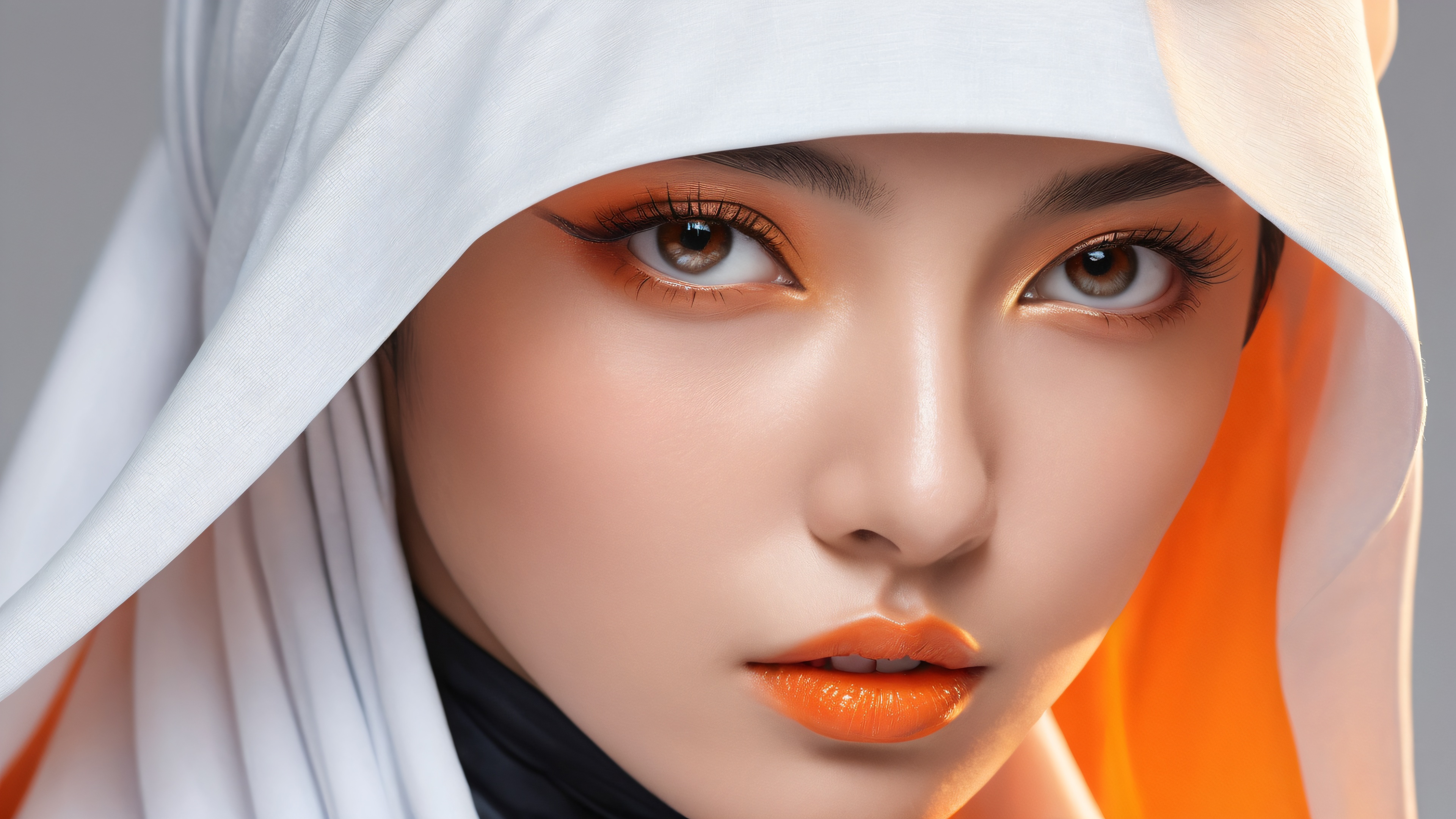 This masterpiece showcases an extreme close-up view of Ninja’s face, with intricate details and textured surfaces that seem almost tactile. The surrounding void is a brilliant shade of orange, which provides a striking contrast to the subject’s skin tone. The lighting is radiant and ethereal, with ray-traced reflections adding depth and dimensionality to the scene.