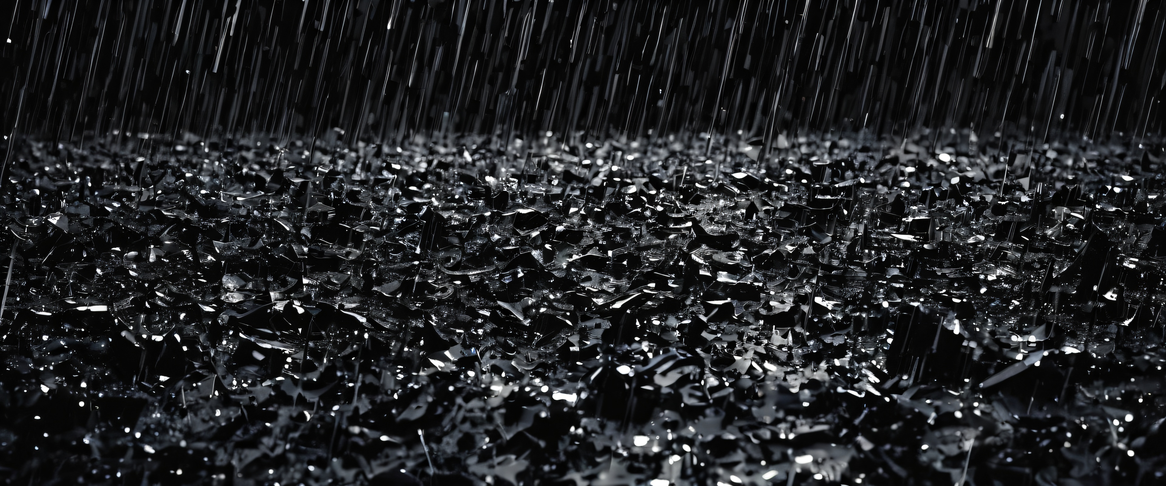 This breathtaking wallpaper features an award-winning digital art masterpiece with extreme depth of field, showcasing a vast pure void of a battlefield on a rainy day. The scene is characterized by pristine clarity, abstract expressionism, and visible brushstrokes. Soft shadows reflect every detail, while deep perfect blacks provide a striking contrast against the elegant luminescent accents. The diffused light source gives the image a slightly cool and mysterious tone.