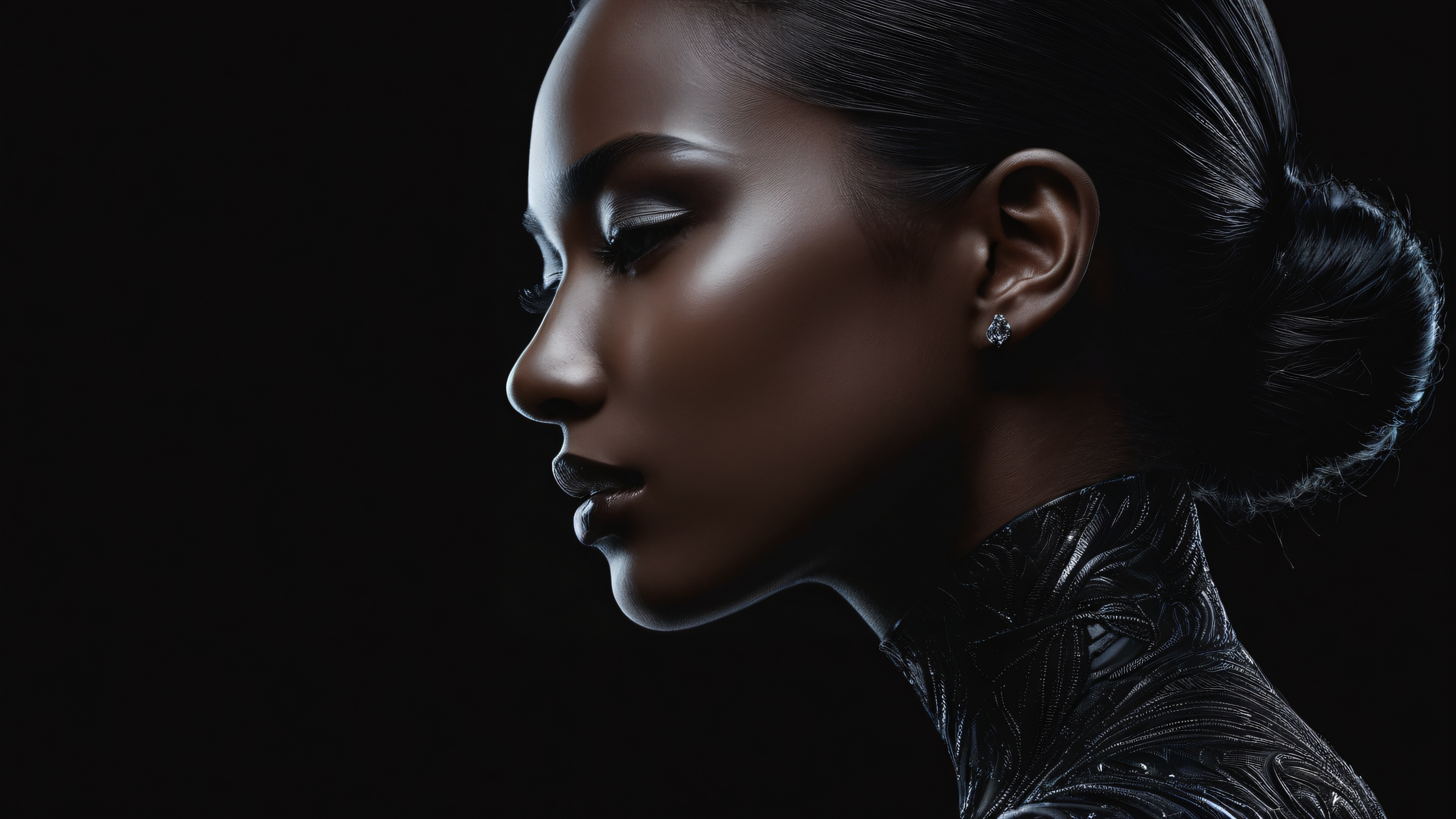A breathtaking desktop wallpaper of Feminine Profile, Perfectly clean vast pure void with extreme depth of field, subtle gradient to emphasize subject’s presence, Award-winning digital art with pristine clarity, blending delicate realism and dreamy fantasy, SLEEK DARK MODE AESTHETIC: Deep perfect blacks, striking crisp contrast, エレガントな発光アクセント, {‘primary’: ‘#C7C5B8’, ‘secondary’: ‘#6c5ce7’}, 16:9 アスペクト比, elegant low-key lighting, deep perfect blacks, 印象的なコントラスト, sleek dark mode aesthetic, luminescent accents, deep rich colors, 受賞歴のあるデジタルアート, 息を呑むような壮大なスケール, 見事な視覚的インパクト, 完璧な構成, 高度にテクスチャーのある表面, 複雑な微細なディテール, 物理ベースのレンダリング, macOSの壁紙の美しさ, 傑作, 最高品質, 非常に詳細な, 8k解像度.