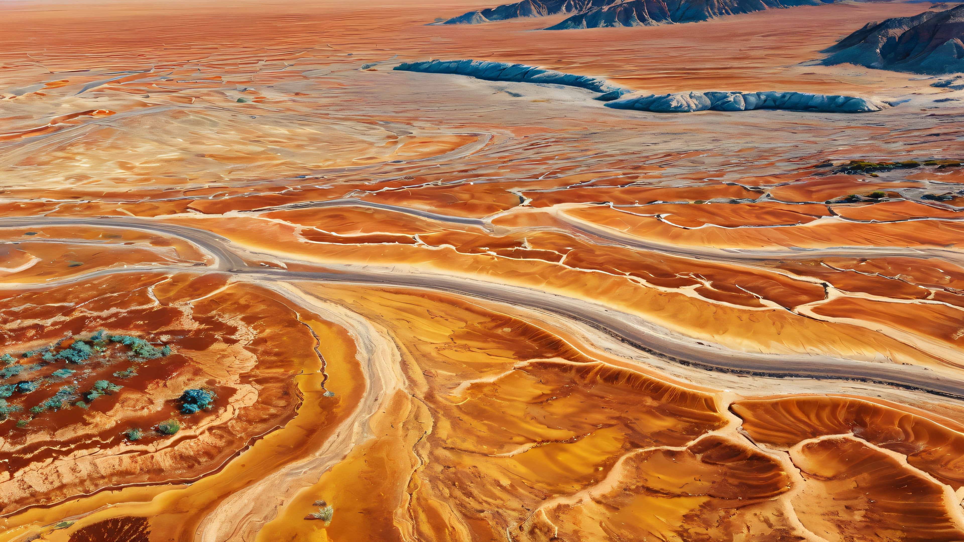 This photorealistic 4K desktop wallpaper features a breathtaking agate with swirling patterns of deep blues and rich greens, partially unearthed from the surrounding earth. The agate’s surface is dotted with tiny imperfections, giving it a sense of character and history. The surrounding landscape stretches out like a vast, parched sea, punctuated by sparse, twisted tree branches that seem to reach out like nature’s own fingers. Soft, diffused sunlight bathes the scene in a warm, golden glow, evoking a sense of ancient history and the secrets that lie hidden beneath the surface.