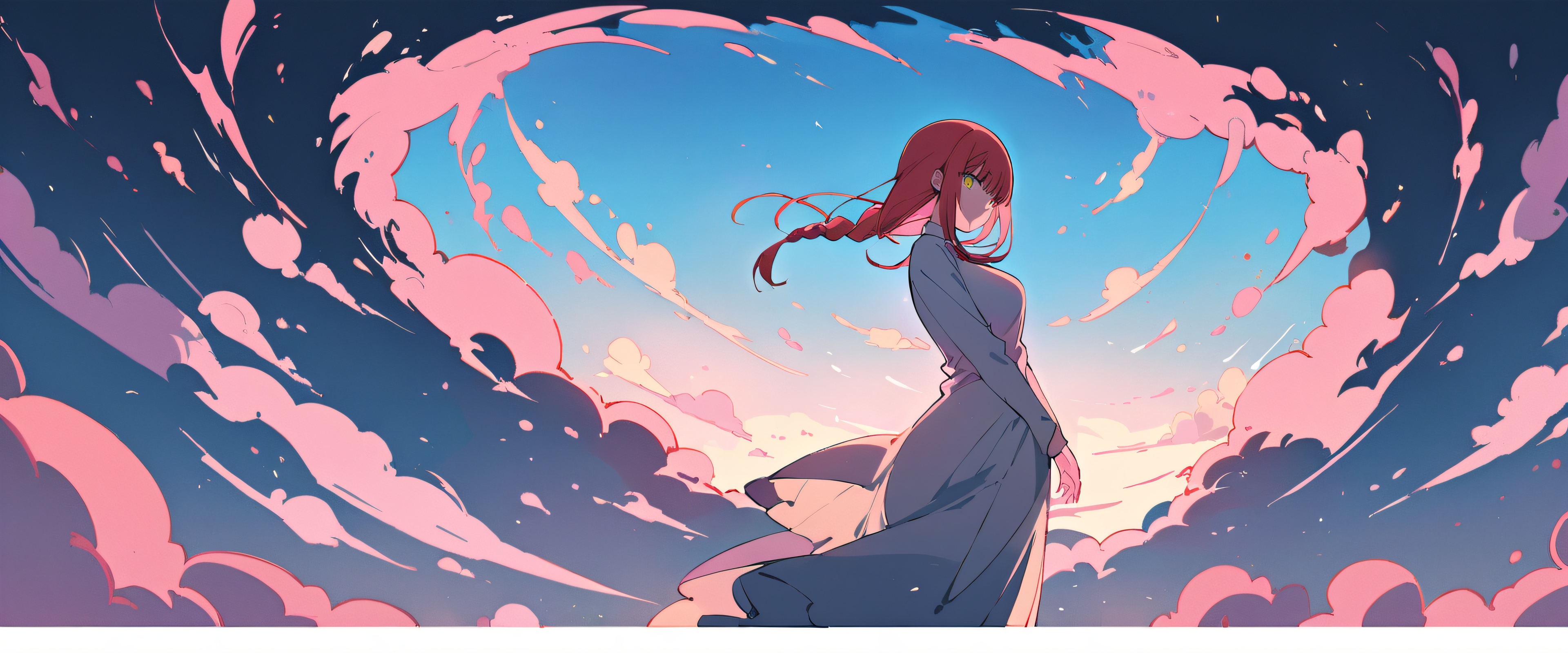 1girl, makima, chainsaw man, solo, masterpiece, best quality, very aesthetic, absurdres, highly detailed, looking at viewer, perfectly clean vast pure void, extreme depth of field, [‘Pastel Pinks’, ‘Creamy Whites’, ‘Soft Grays’], 21:9 ultrawide panoramic aspect ratio, epic wide shot, bright and airy, ethereal lighting, beautiful sky, cinematic lighting, vivid colors
