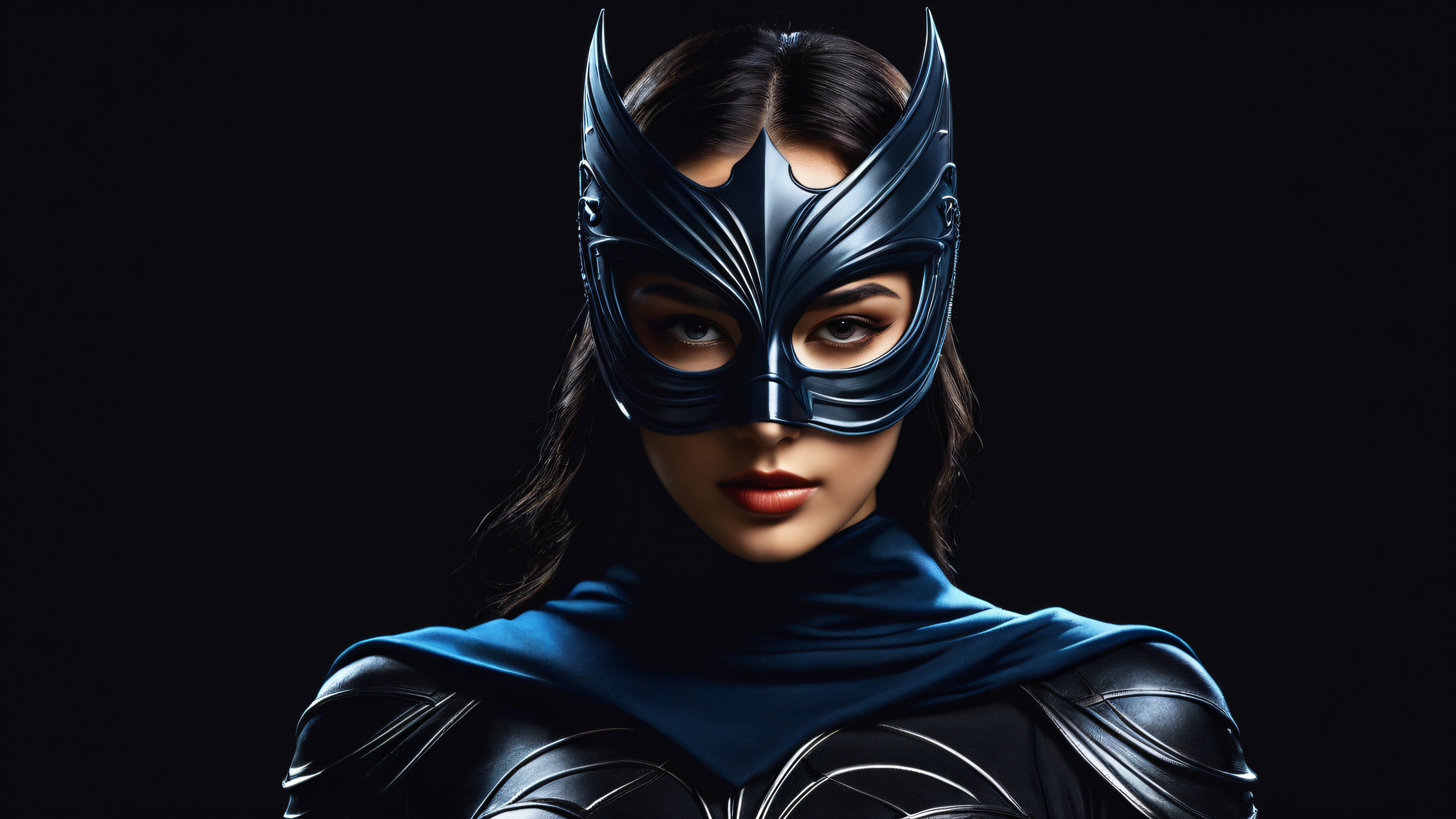 Experience the breathtaking elegance of this award-winning digital art, featuring a Masked Heroine amidst a vacuum-like environment. The pristine clarity and 16:9 aspect ratio create an immersive atmosphere, with deep blacks, striking contrast, and luminescent accents that evoke a sense of mystery. This masterpiece showcases perfect composition, highly textured surfaces, and intricate micro-details, making it the epitome of dark mode aesthetic.