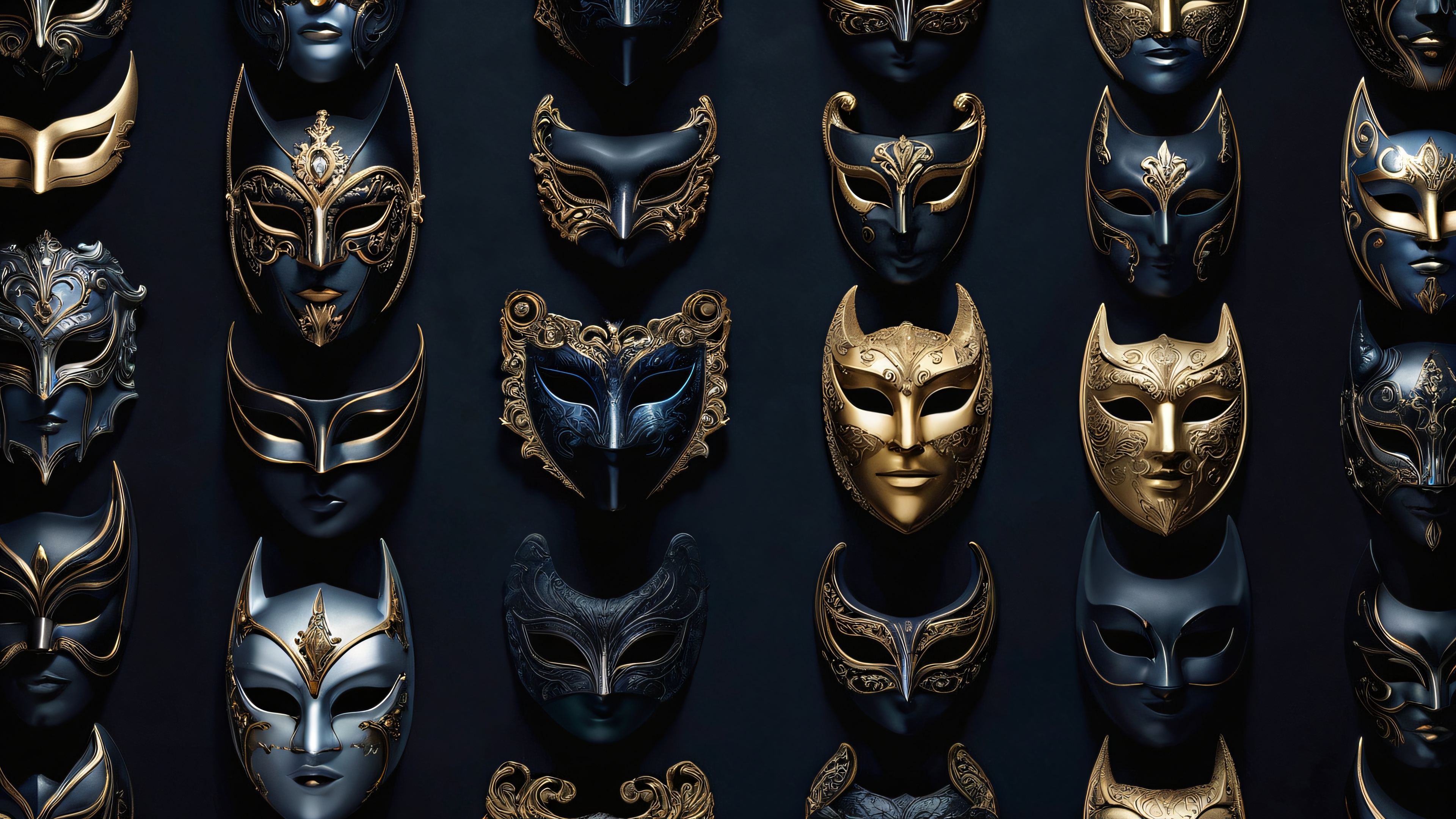 A breathtaking desktop wallpaper of Masks & Capes, perfectly clean vast pure void, extreme depth of field, award-winning digital art, pristine clarity, SLEEK DARK MODE AESTHETIC. Deep perfect blacks, striking crisp contrast, and elegant luminescent accents., [‘Muted Browns’, ‘Soft Grays’, ‘Rich Blues’], 16:9 aspect ratio, elegant low-key lighting, deep perfect blacks, striking contrast, sleek dark mode aesthetic, luminescent accents, deep rich colors, award-winning digital art, epic breathtaking scale, stunning visual impact, perfect composition, highly textured surfaces, intricate micro-details, physically based rendering, macOS wallpaper aesthetic, masterpiece, highest quality, highly detailed, 8k resolution.