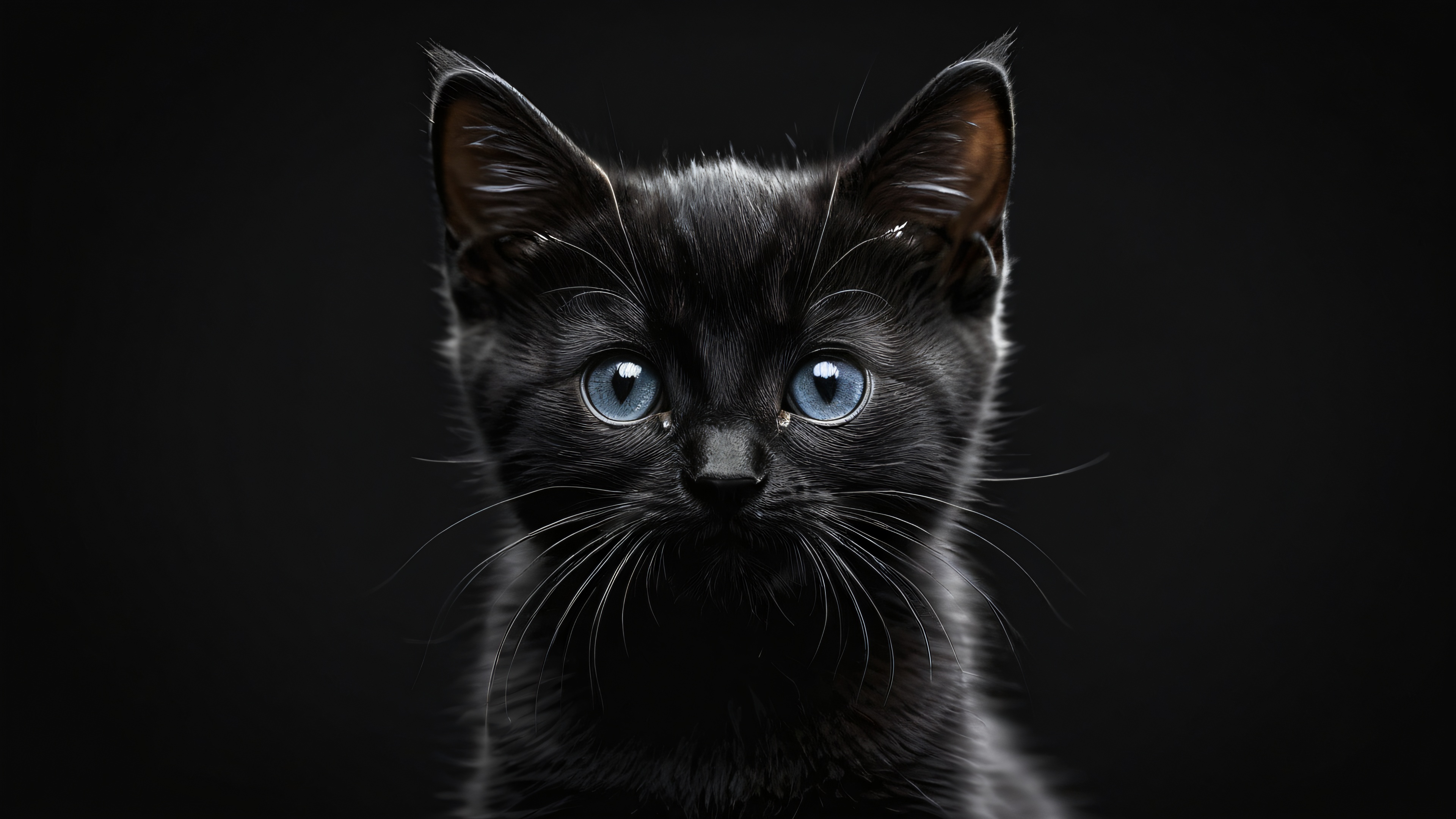 A breathtaking desktop wallpaper of Female Kitten, Perfectly clean vast pure void, extreme depth of field, Award-winning digital art, pristine clarity, SLEEK DARK MODE AESTHETIC. Deep perfect blacks, striking crisp contrast, and elegant luminescent accents., #F2C464 #FFA07A, 16:9 aspect ratio, elegant low-key lighting, deep perfect blacks, striking contrast, sleek dark mode aesthetic, luminescent accents, deep rich colors, award-winning digital art, epic breathtaking scale, stunning visual impact, perfect composition, highly textured surfaces, intricate micro-details, physically based rendering, macOS wallpaper aesthetic, masterpiece, highest quality, highly detailed, 8k resolution.