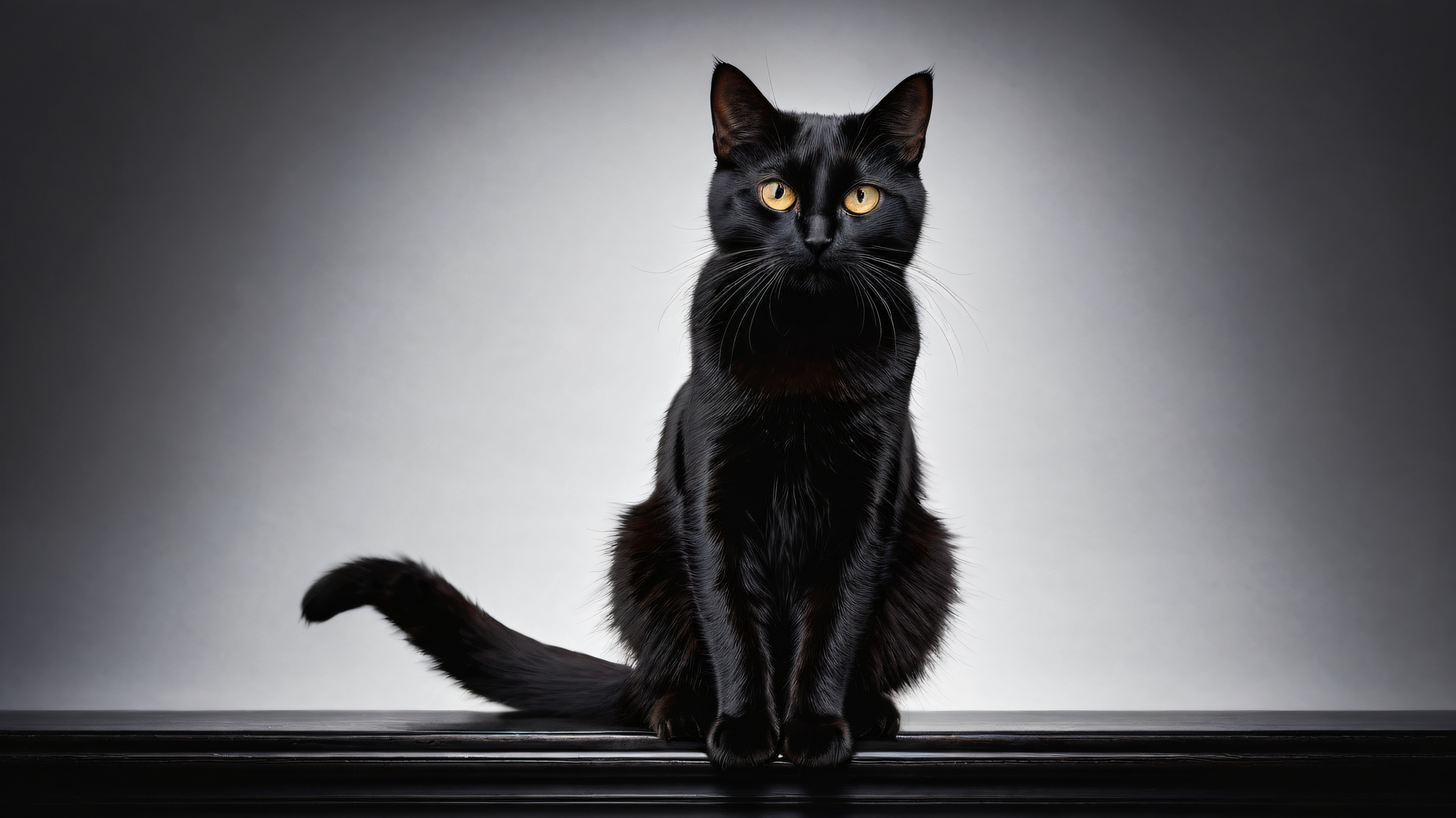 A breathtaking desktop wallpaper of black cat, perfectly clean vast pure void, extreme depth of field, award-winning digital art, pristine clarity, SLEEK DARK MODE AESTHETIC. Deep perfect blacks, striking crisp contrast, and elegant luminescent accents., [‘black’], 16:9 aspect ratio, elegant low-key lighting, deep perfect blacks, striking contrast, sleek dark mode aesthetic, luminescent accents, deep rich colors, award-winning digital art, epic breathtaking scale, stunning visual impact, perfect composition, highly textured surfaces, intricate micro-details, physically based rendering, macOS wallpaper aesthetic, masterpiece, highest quality, highly detailed, 8k resolution.