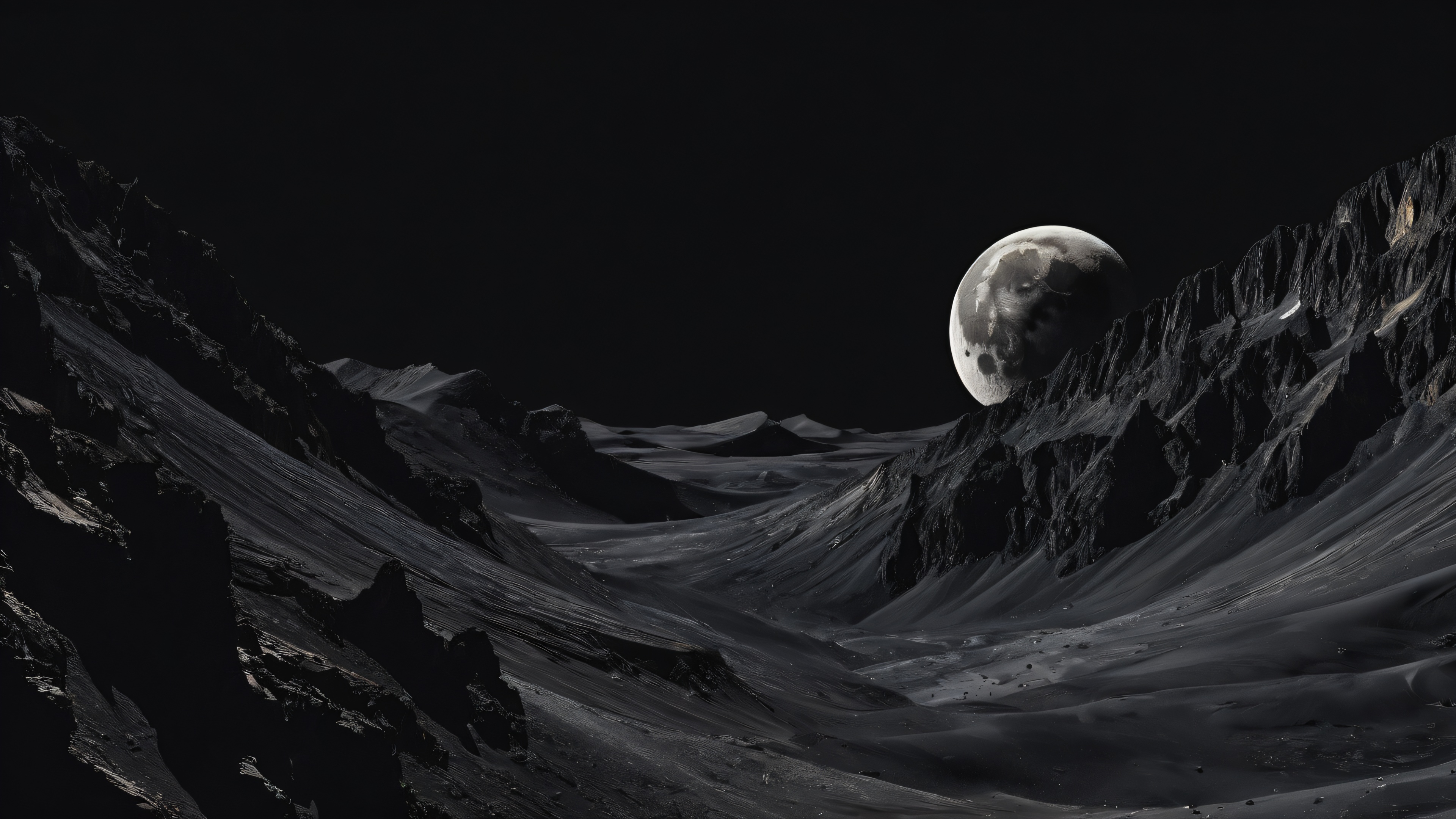 A breathtaking desktop wallpaper of Moon, A perfectly clean vast pure void with extreme depth of field, set against the blackness of space., Award-winning digital art, pristine clarity, featuring intricate details and textures., SLEEK DARK MODE AESTHEThetic. Deep perfect blacks, striking crisp contrast, and elegant luminescent accents., {‘primary’: ‘#212121’, ‘secondary’: ‘#333333’}, 16:9 aspect ratio, elegant low-key lighting, deep perfect blacks, striking contrast, sleek dark mode aesthetic, luminescent accents, deep rich colors, award-winning digital art, epic breathtaking scale, stunning visual impact, perfect composition, highly textured surfaces, intricate micro-details, physically based rendering, macOS wallpaper aesthetic, masterpiece, highest quality, highly detailed, 8k resolution.