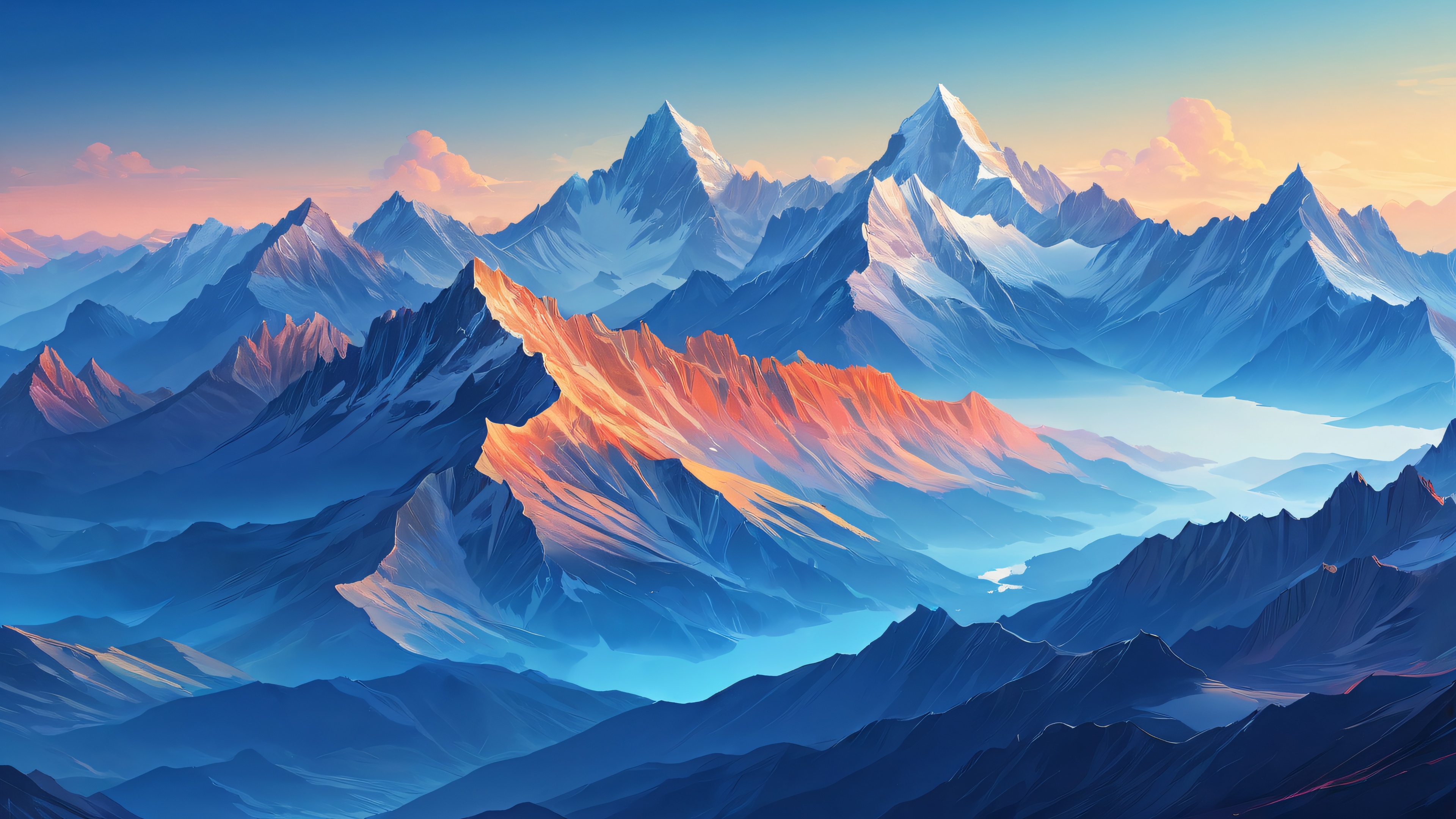 A breathtaking desktop wallpaper of mountains, perfectly clean vast pure void, extreme depth of field, award-winning digital art, pristine clarity, ETHEREAL LIGHTING. Radiant, brilliant colors, ray traced reflections, and pristine clarity. Bright and airy., {‘primary’: ‘blue’}, 16:9 aspect ratio, ethereal lighting, radiant, brilliant colors, ray traced reflections, pristine clarity, award-winning digital art, epic breathtaking scale, stunning visual impact, perfect composition, highly textured surfaces, intricate micro-details, physically based rendering, macOS wallpaper aesthetic, masterpiece, highest quality, highly detailed, 8k resolution.
