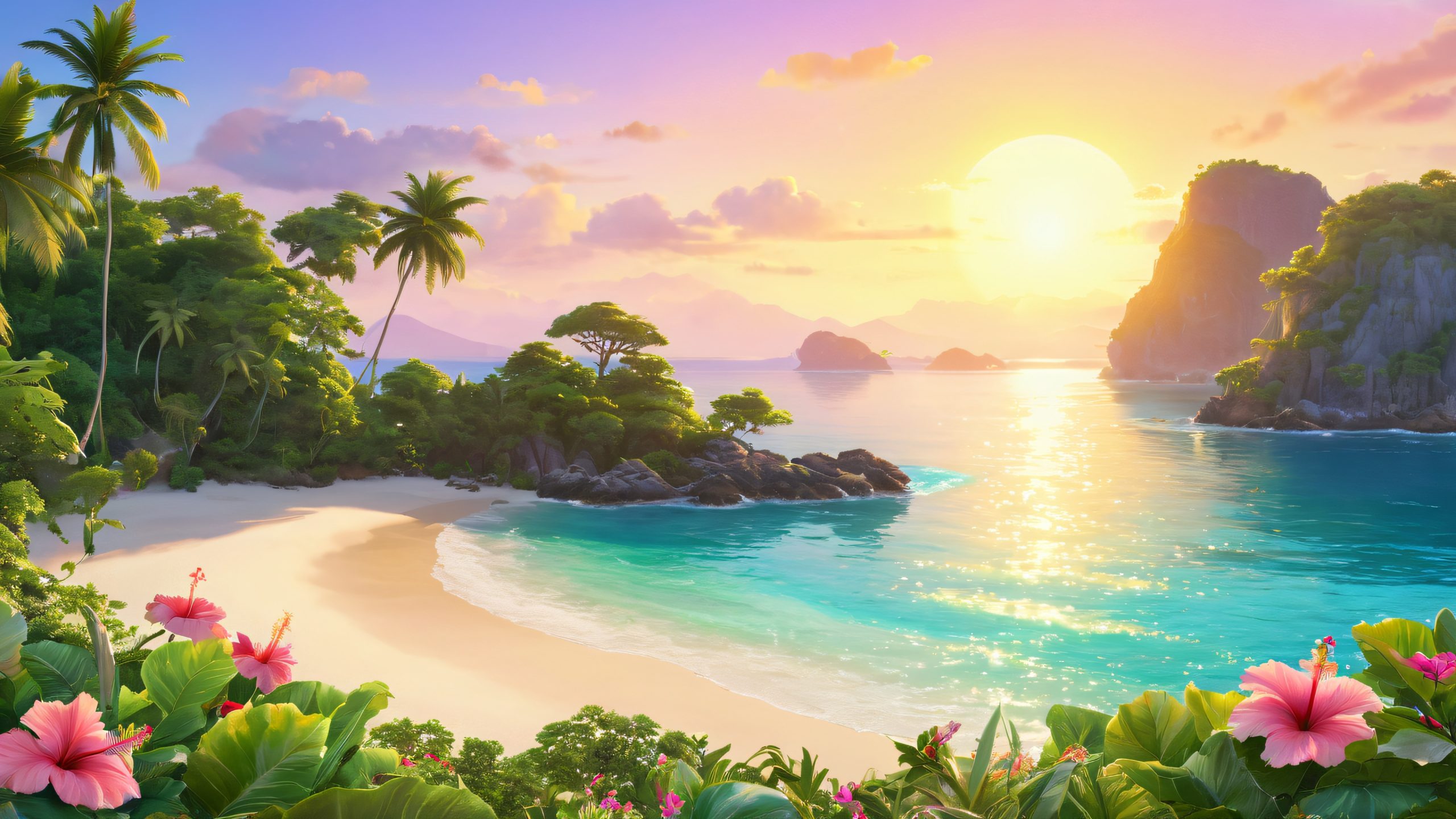 Mystical Isle Wallpaper – Tropical Paradise at Sunset – 4K Quality Free Download: