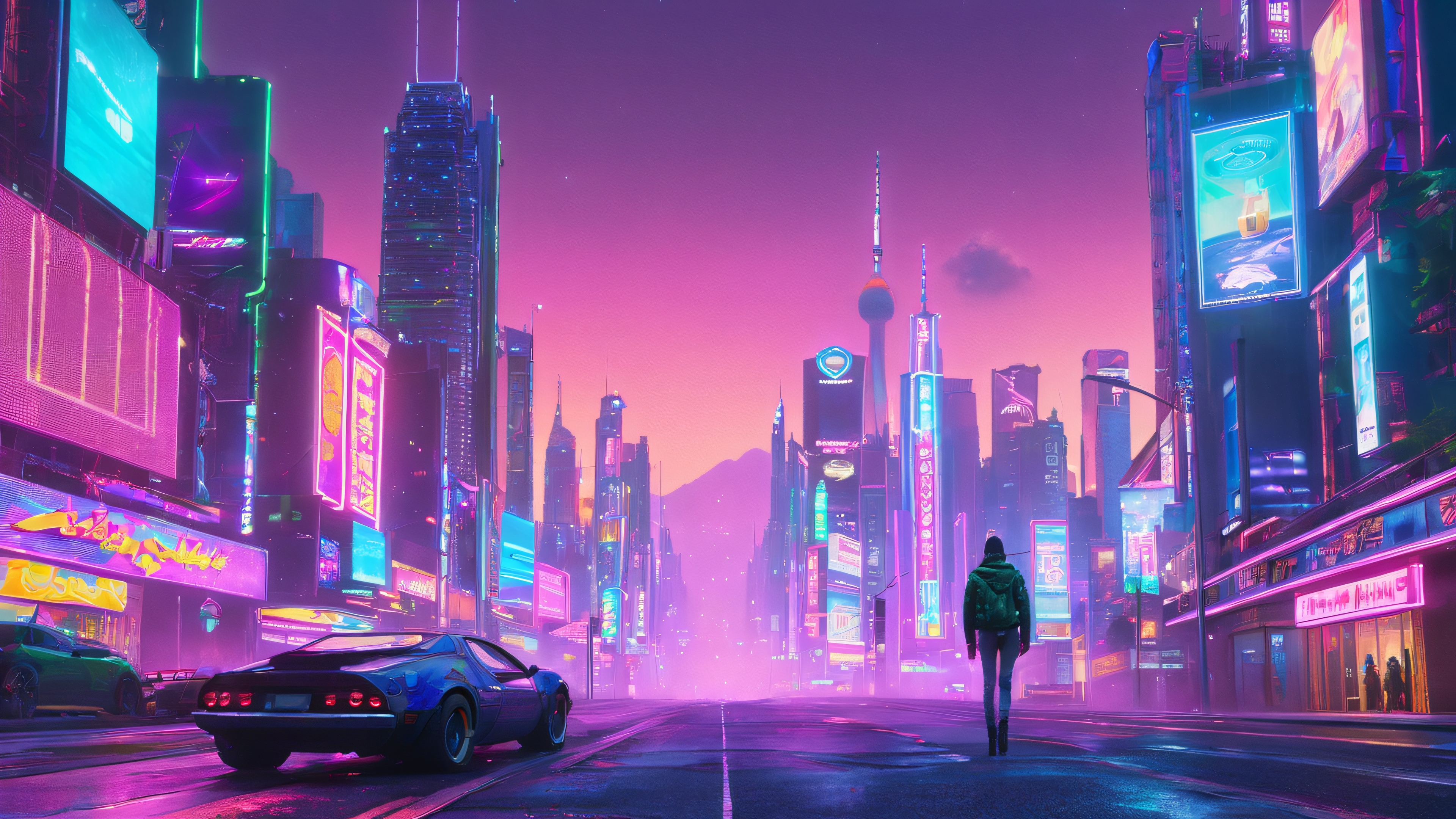 Neon Cityscape Odyssey Aesthetic PC Wallpaper Free Download: