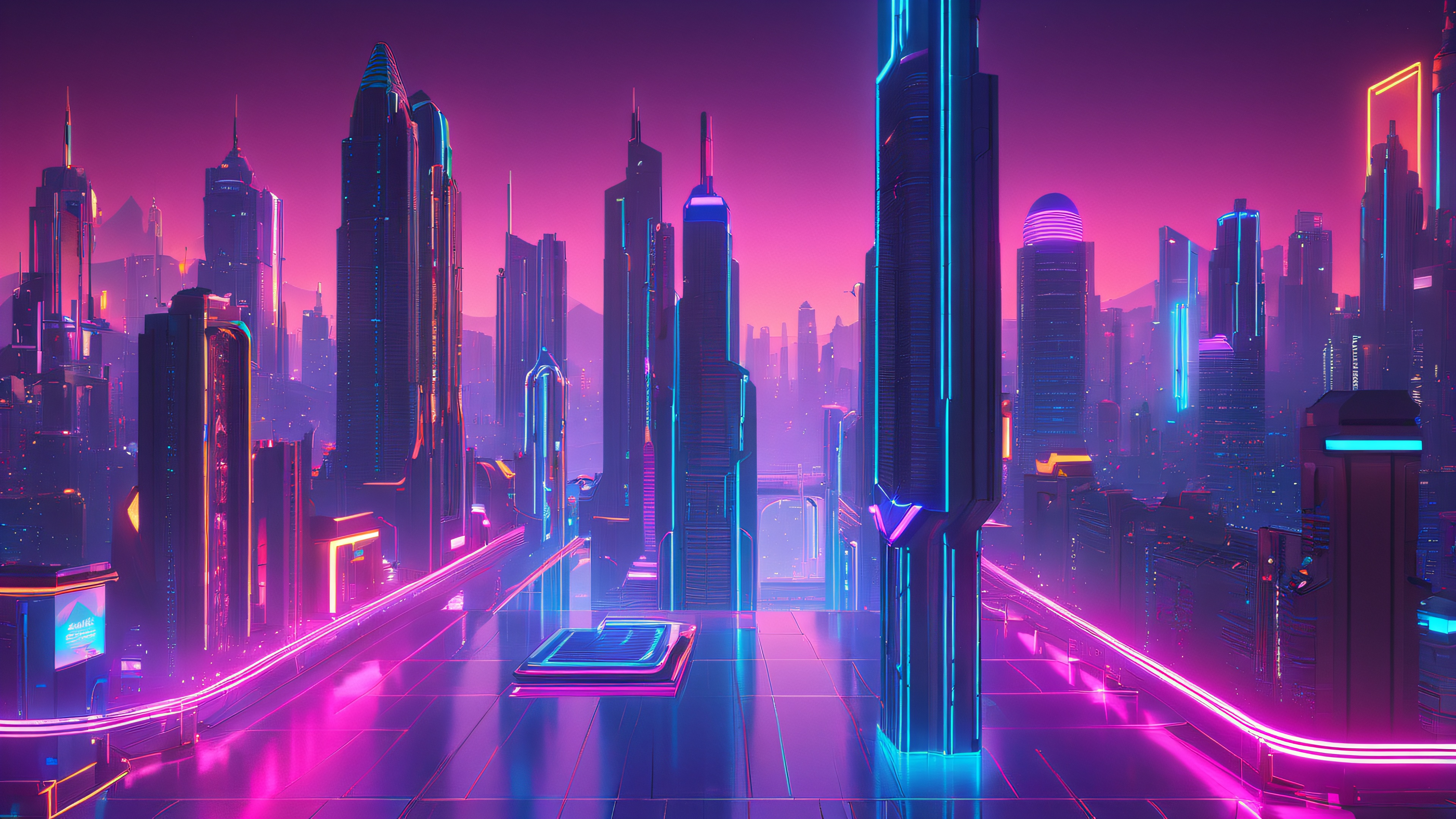 A stylized cityscape for your desktop or PC, featuring neon lights and retro-futuristic vibes.