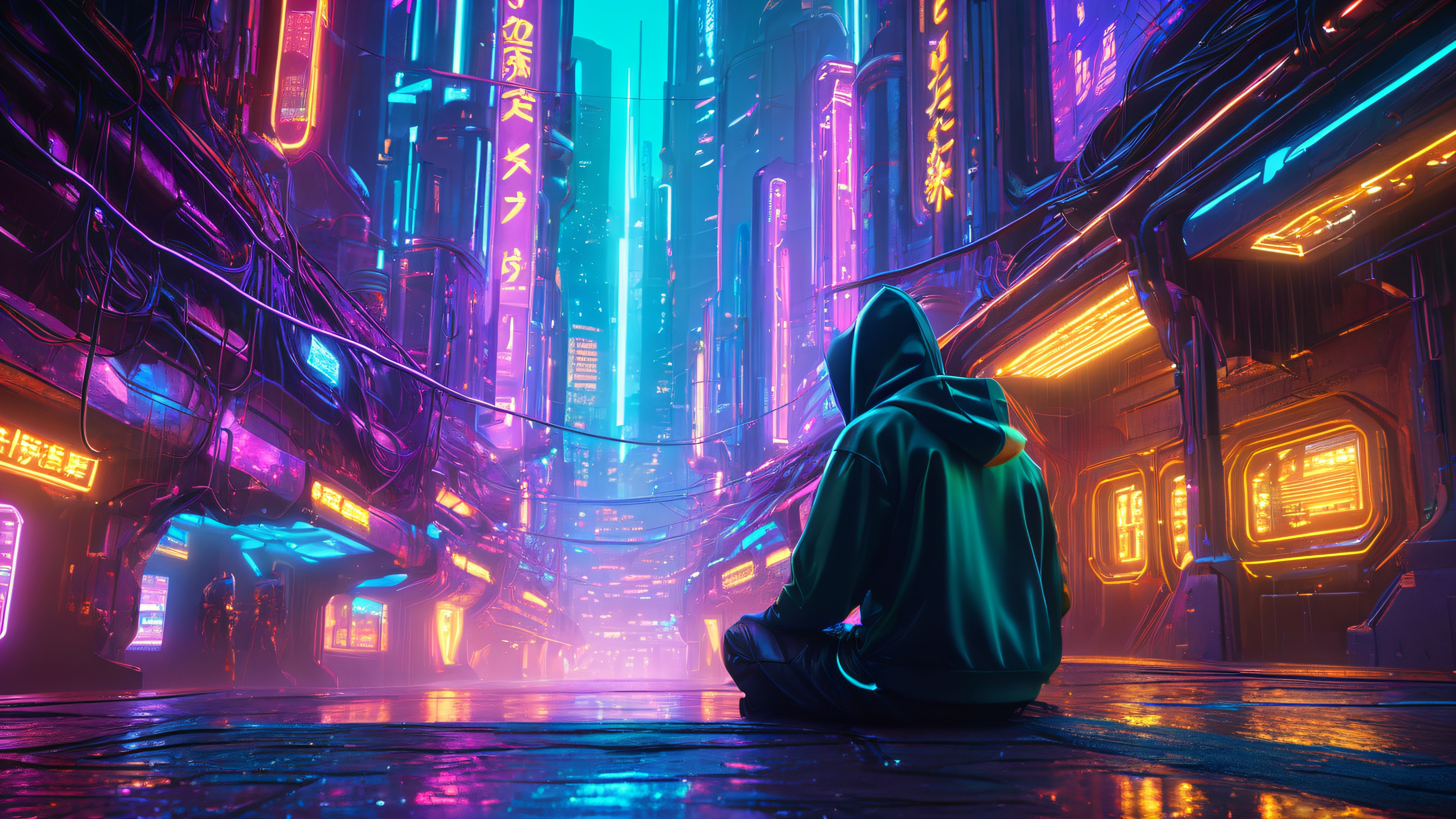 Ultra HD Neon Hacker’s Lair Wallpaper