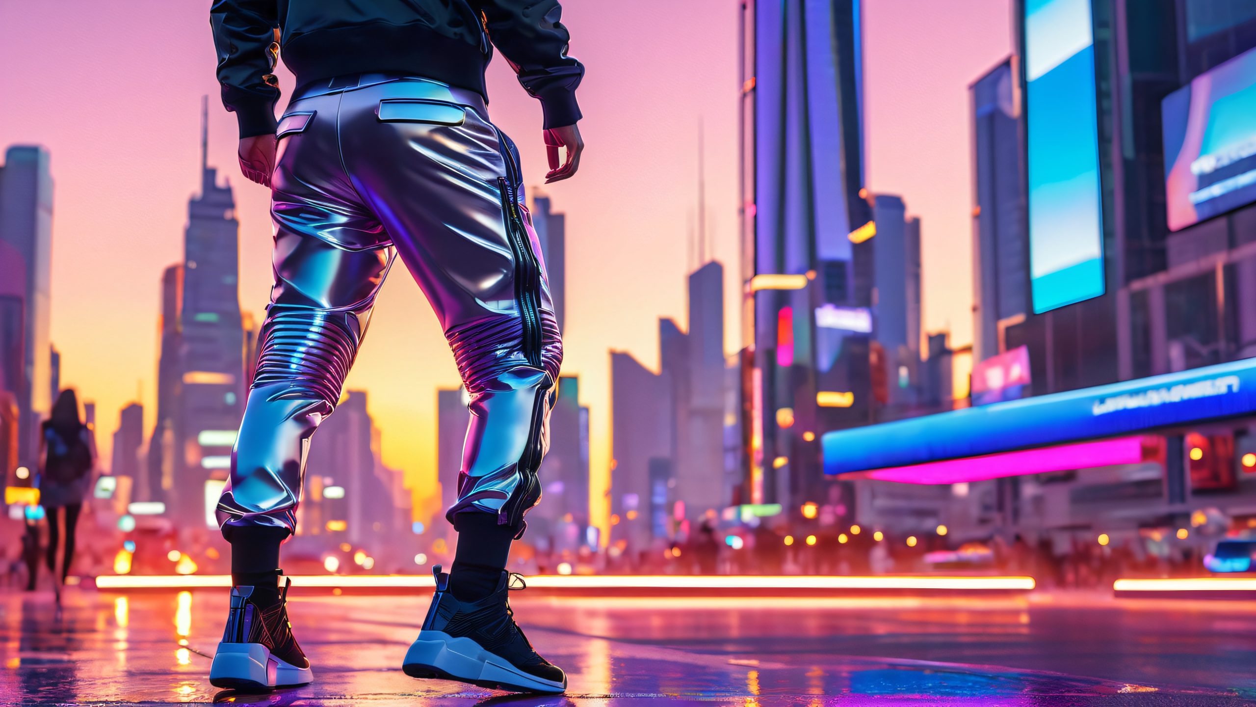 cityscape · Cyberpunk · futuristic · golden-hour-lighting · high-tech-fashion · neon-lit-cityArticle Categories: