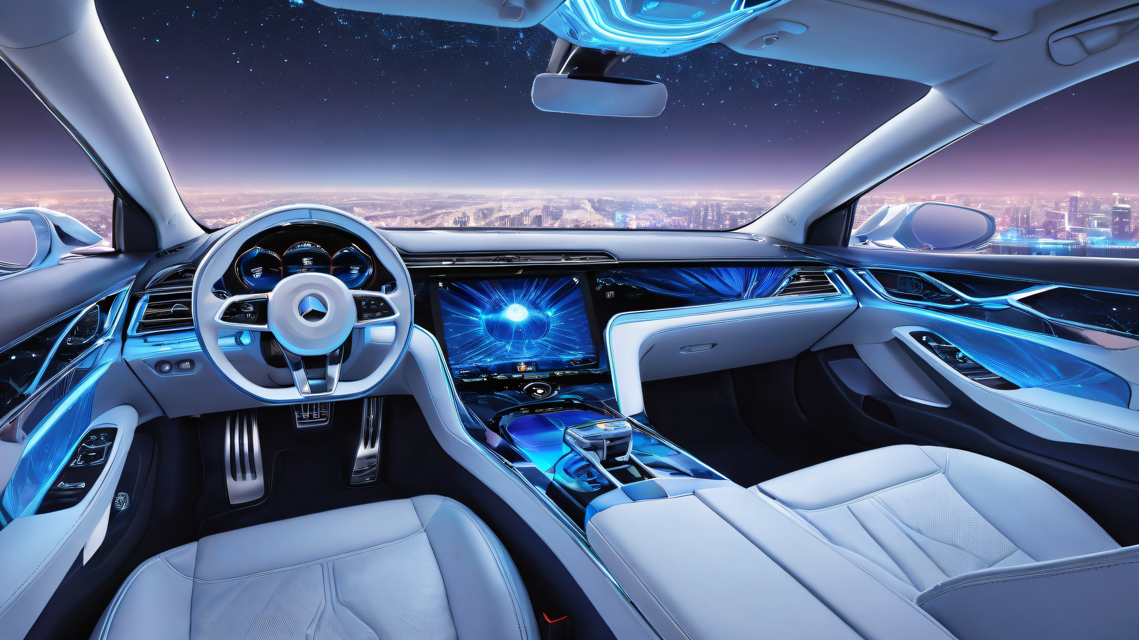 Ethereal lighting illuminates the pristine void, showcasing intricate details of the dashboard’s holographic projections. Radiant colors and ray-traced reflections create a sense of depth and clarity, while subtle blue undertones evoke innovation and technology. This stunning 8K wallpaper features award-winning digital art with physically based rendering, highly textured surfaces, and epic scale.