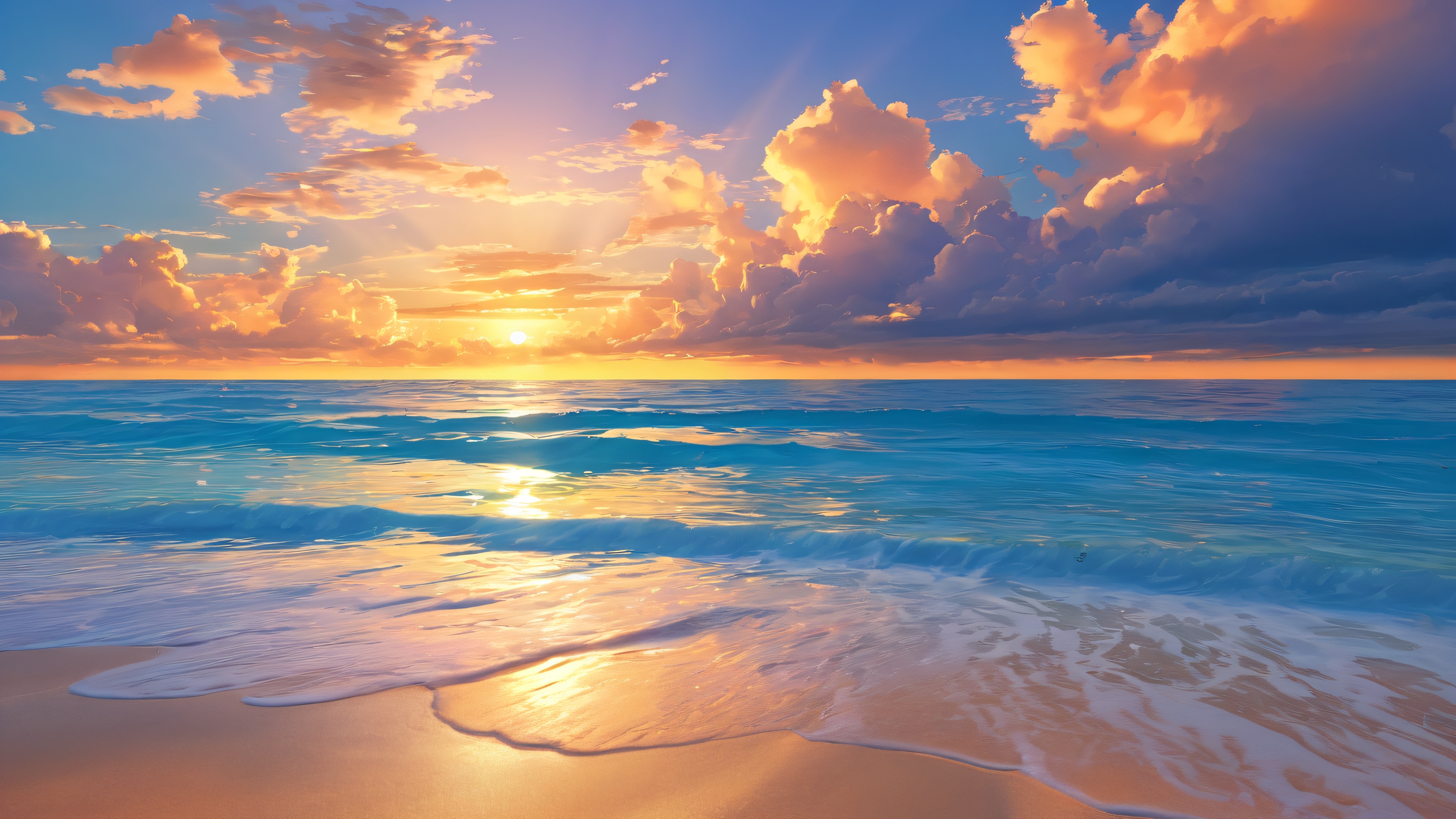Ethereal Beach Sunset Odyssey 4K UHD Wallpaper Free Download: