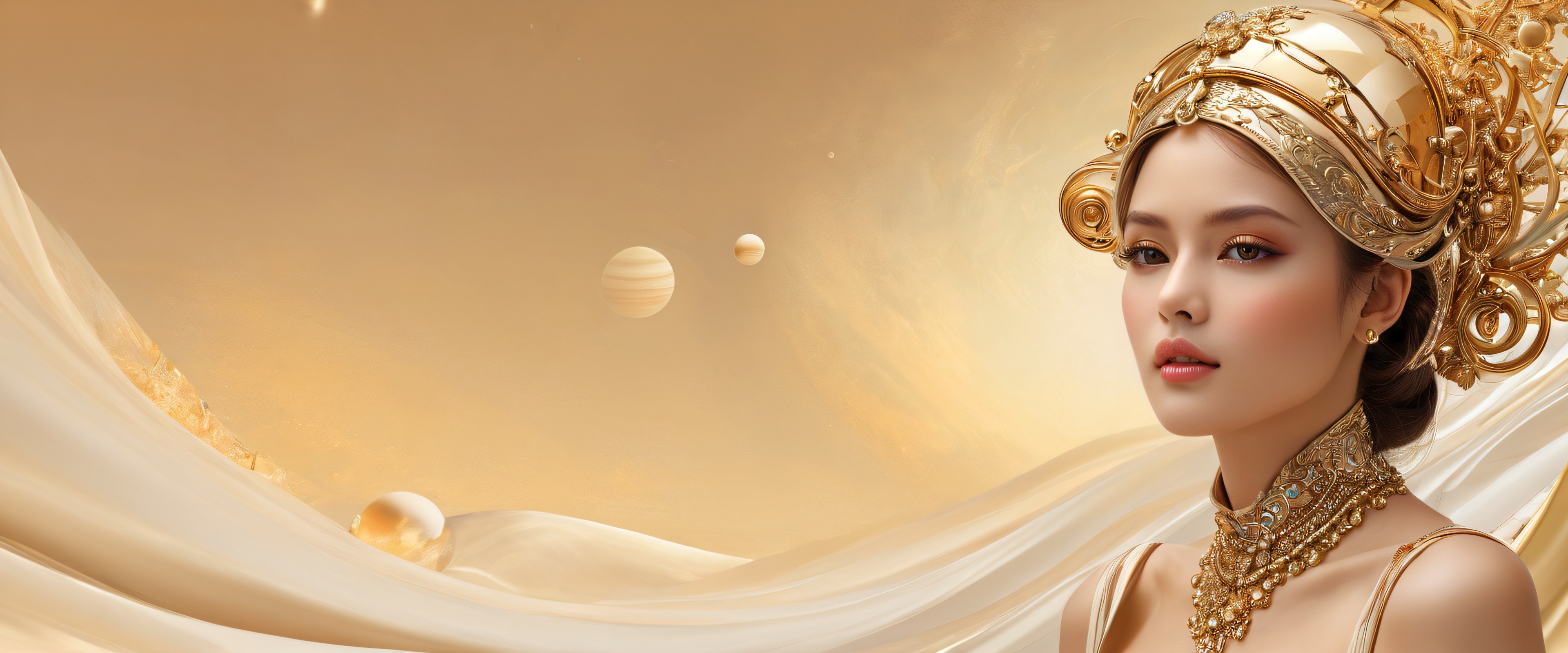 This breathtaking desktop wallpaper boasts an award-winning digital art piece, characterized by pristine clarity and luxurious gold trim. The scene’s ethereal lighting creates a bright and airy atmosphere, with radiant, brilliant colors and ray-traced reflections that add depth and dimensionality. The stunning visuals are set against a clean, vast pure void backdrop, allowing the viewer to fully appreciate the intricate details of the prestigious woman’s planetary sphere head.