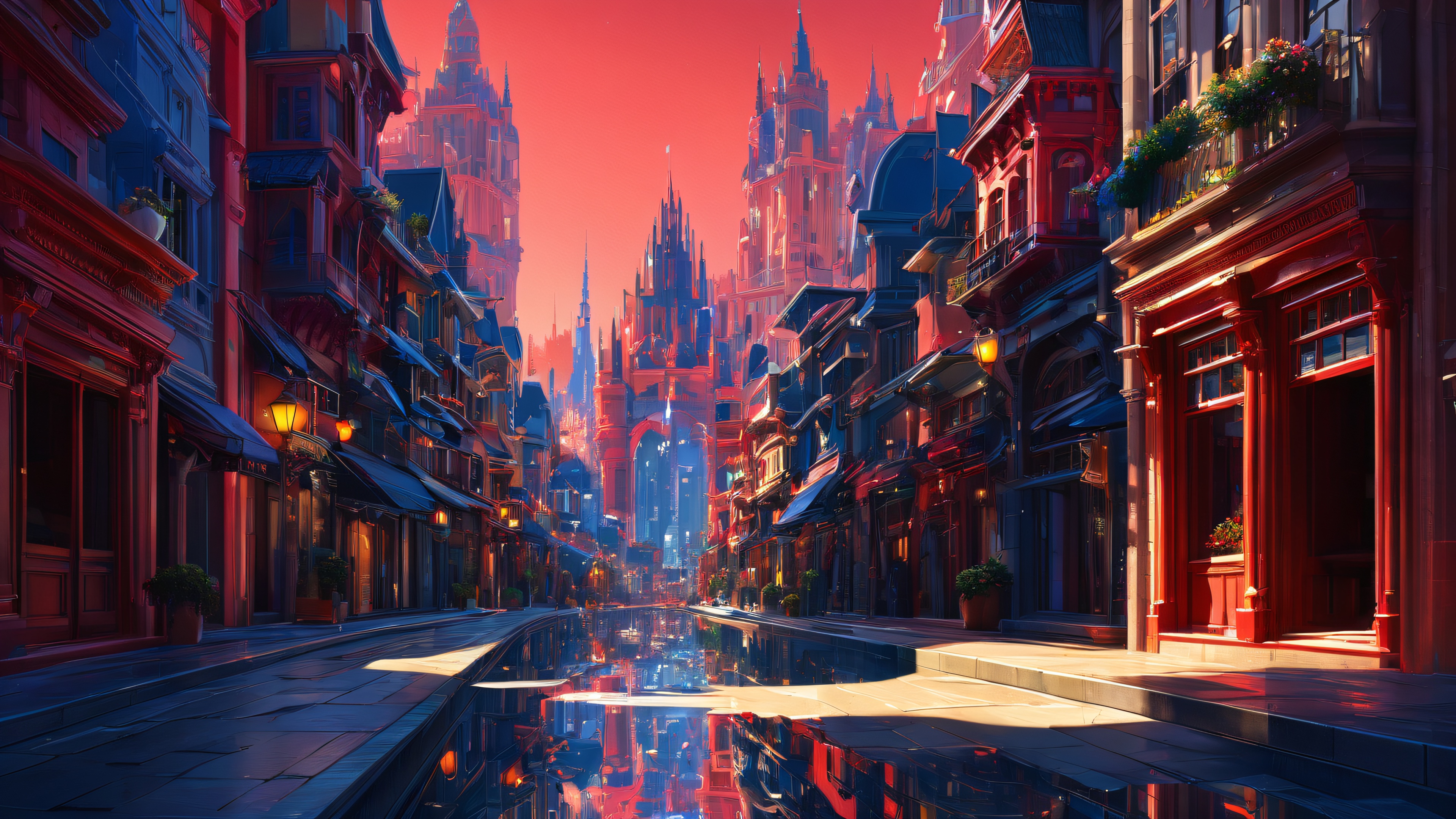A breathtaking desktop wallpaper of city, perfectly clean vast pure void, extreme depth of field, dark background, award-winning digital art, clareza imaculada, CGI masterwork, ETHEREAL LIGHTING: Radiant, brilliant colors, reflexos traçados por raio, bright and airy, with deep shadows, [‘dark’, ‘red’, ‘blue’], 16:9 aspect ratio, iluminação etérea, radiant, brilliant colors, reflexos traçados por raio, clareza imaculada, award-winning digital art, epic breathtaking scale, stunning visual impact, composição perfeita, highly textured surfaces, intricate micro-details, physically based rendering, macOS wallpaper aesthetic, obra de arte, highest quality, highly detailed, 8k resolution.