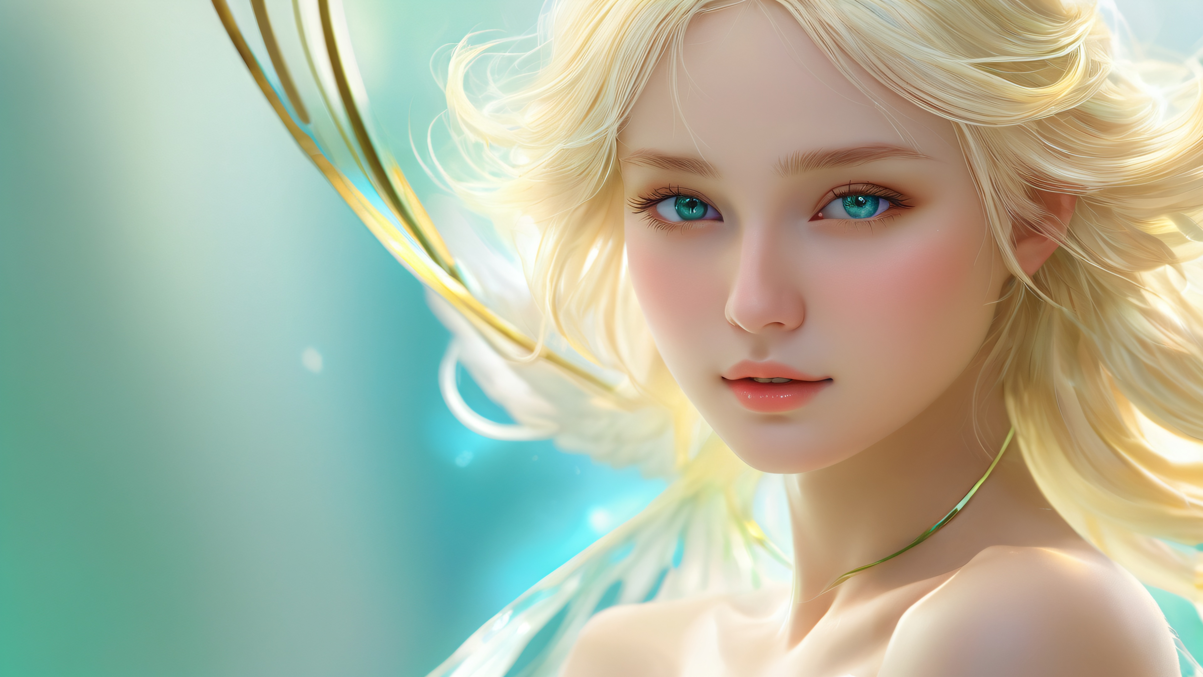 This breathtaking digital art piece transports you to a realm of serenity, showcasing exquisite details and textures in an 8k resolution. The dominant color is a soothing green, complemented by muted tones of blonde and blue. Ethereal lighting creates a sense of depth and dimensionality, while ray-traced reflections add to the overall visual impact.