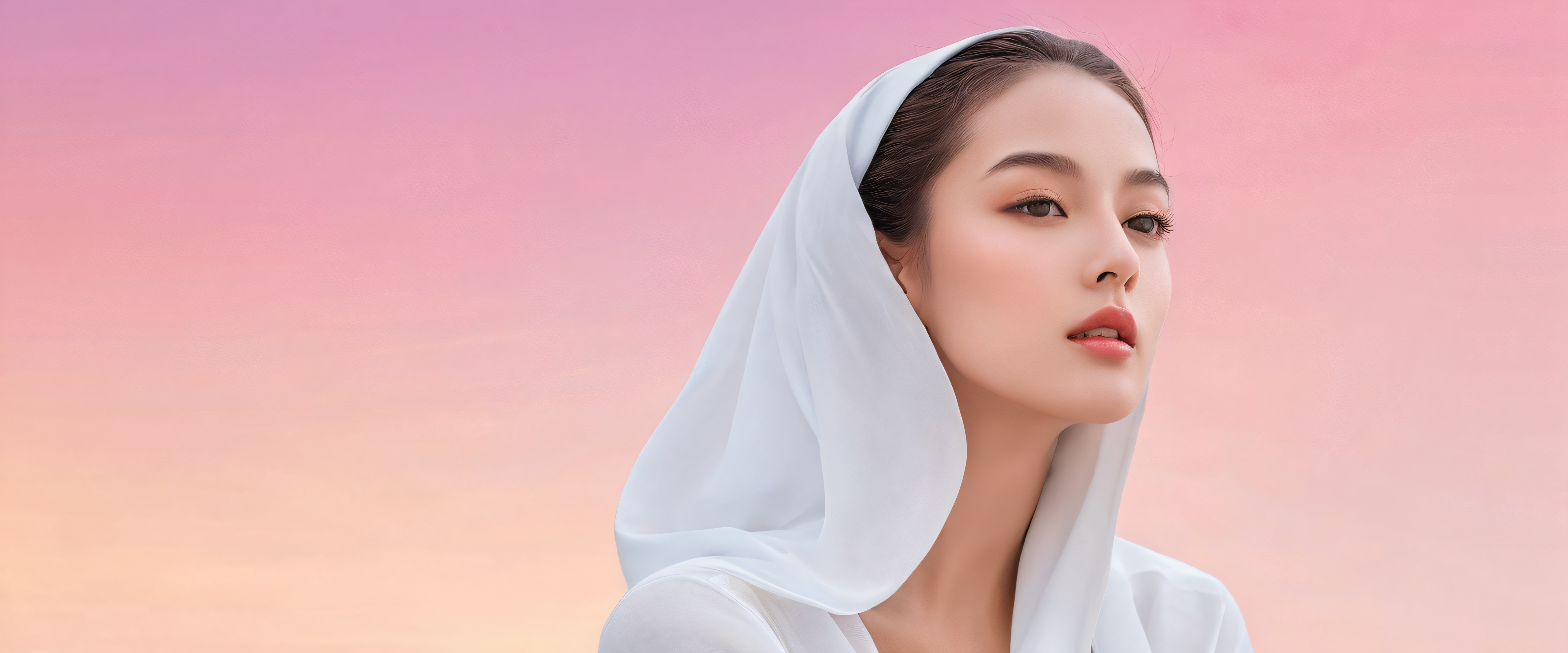 This breathtaking wallpaper captures the essence of ethereal elegance with its award-winning digital art. The subject takes center stage against a vast, pristine void, showcasing her captivating presence. The atmosphere is bright and airy, with radiant colors and ray-traced reflections creating an otherworldly ambiance.