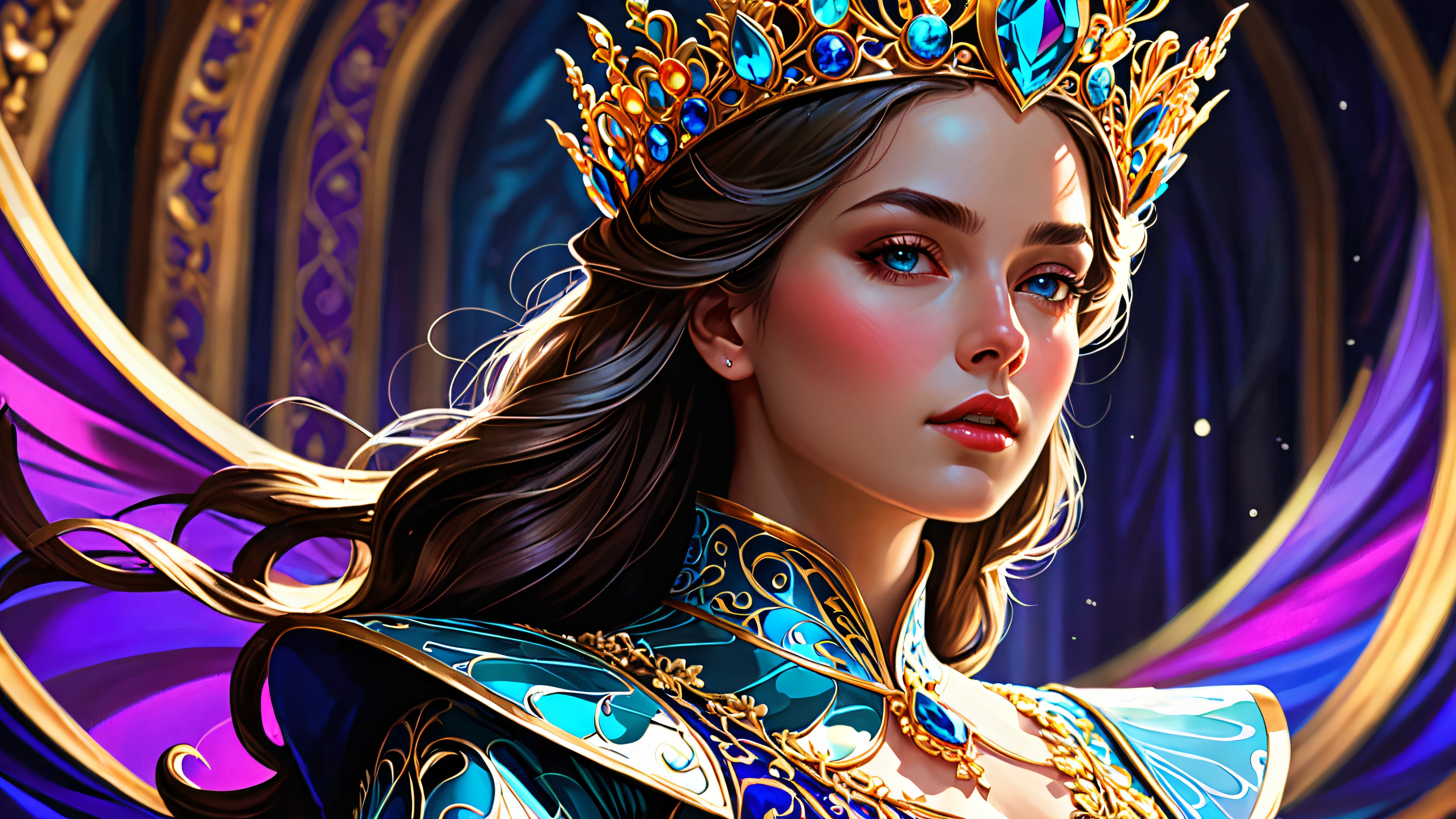 This breathtaking abstract artwork features an award-winning digital art piece of a regal woman standing confidently in a vast, clean space. The extreme depth of field creates a sense of volume and dimensionality, while ethereal lighting and radiant colors bring the scene to life. Ray-traced reflections add a touch of realism, creating an immersive experience.
