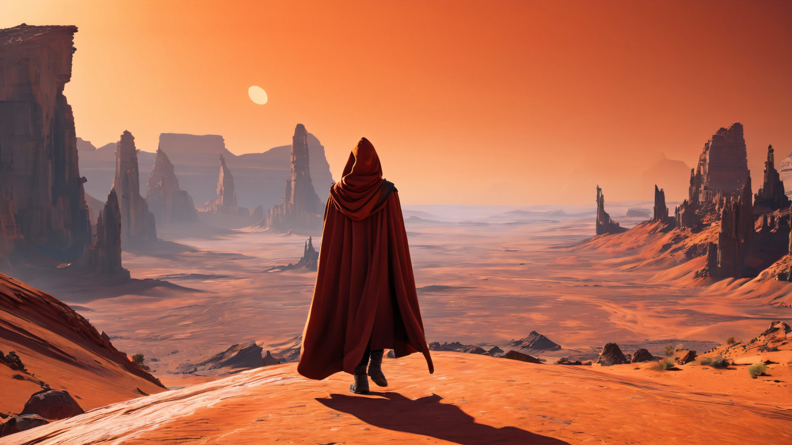 Rust-Red Apocalypse: Crimson Cloak Wallpaper Free Download: